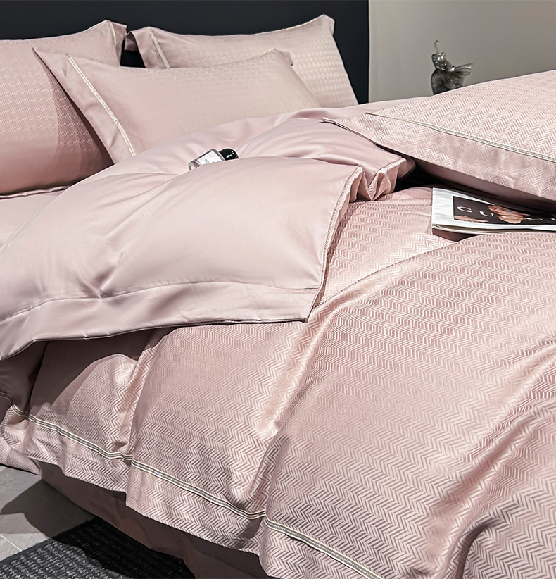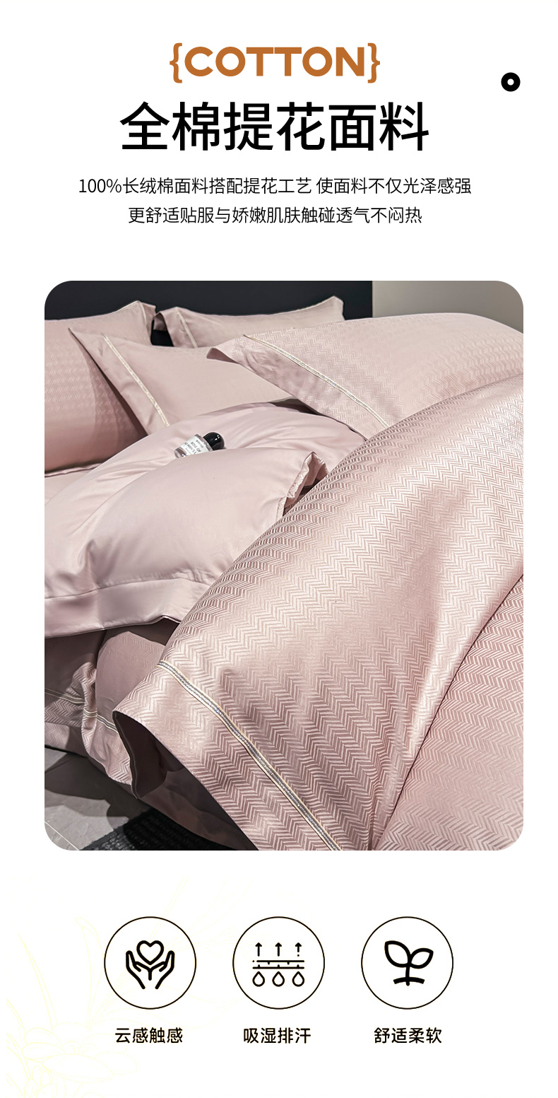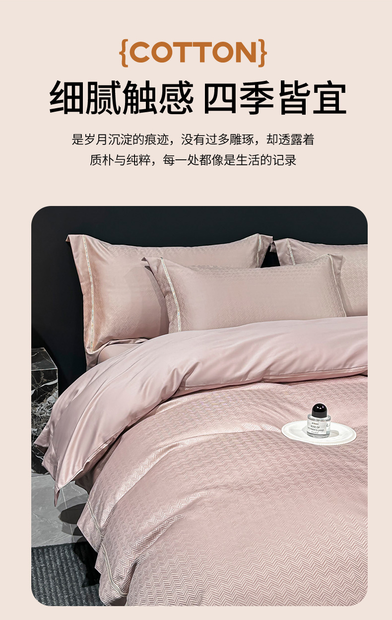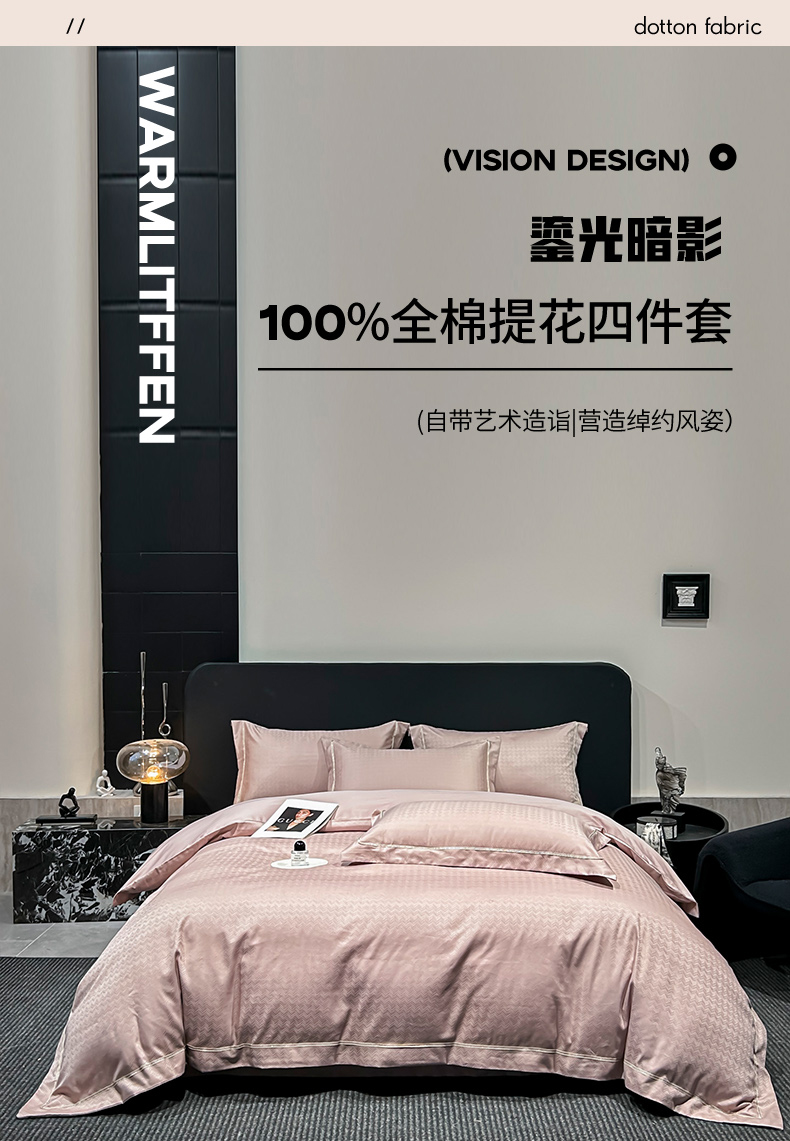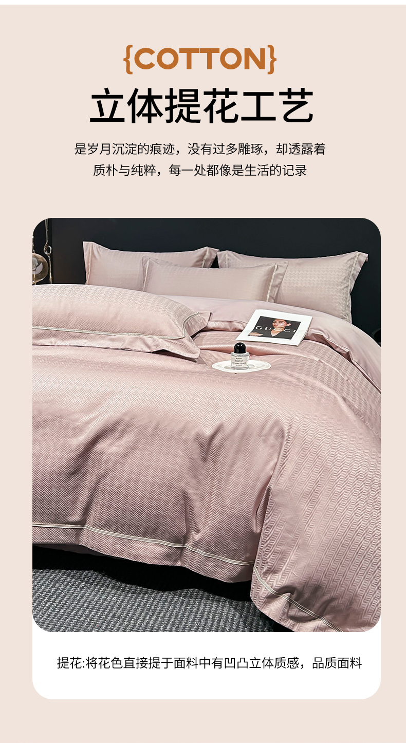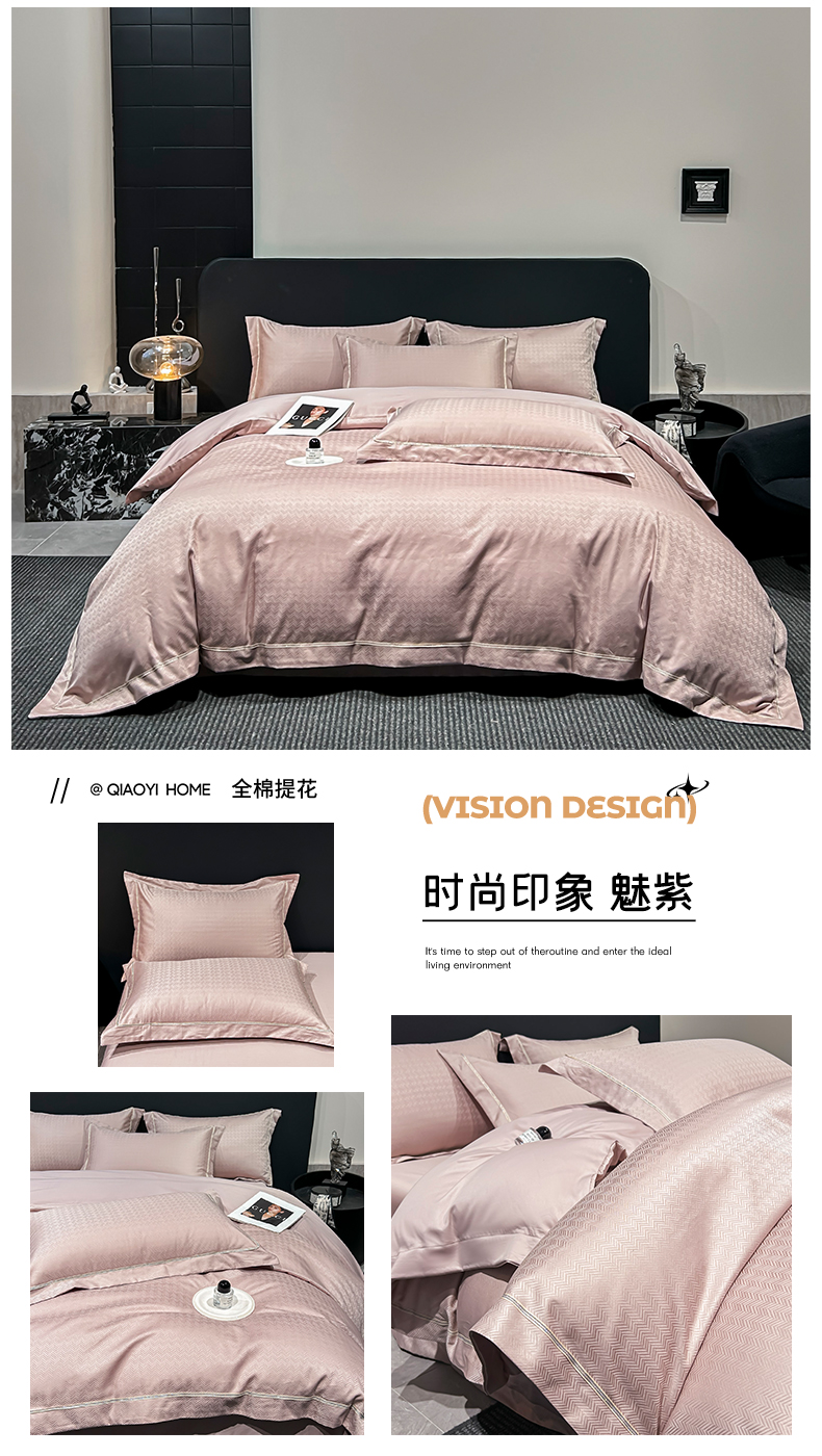启航家居 2026新款50支全棉提花四件套 时尚印象魅紫