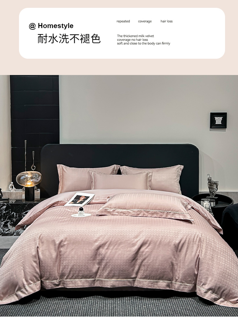 (总)启航家居 2025爆款加厚牛奶绒织带剪花工艺四件套,爱玛粉,爱玛咖,路易白,路易橙,路易灰