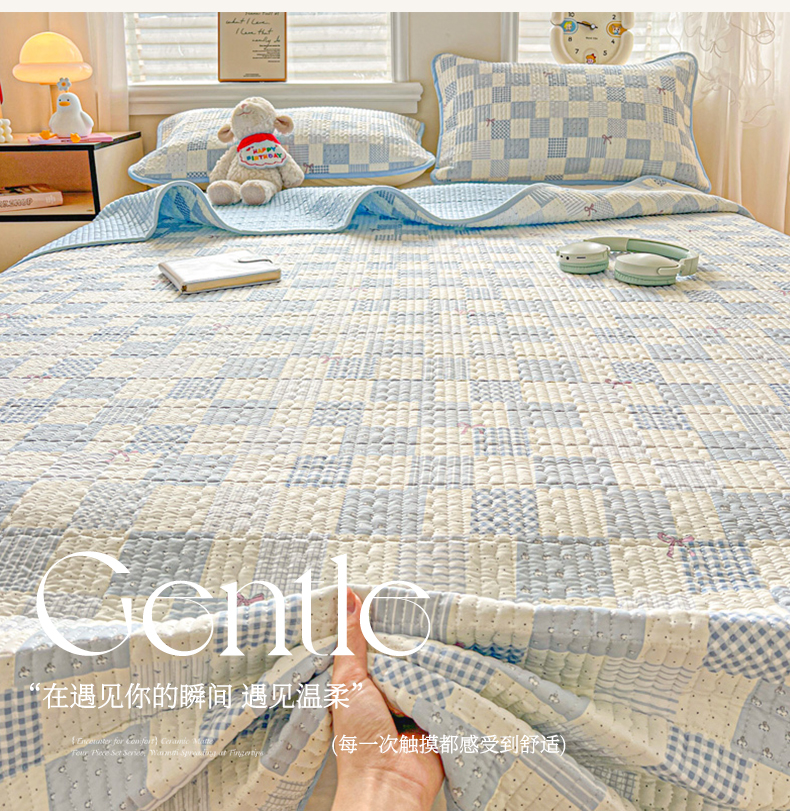 (总)岚吉家纺 2025新款全棉绗缝棉花床盖花边款三件套四件套,缤纷樱桃,草莓格子,花边兔,黄苏条,蓝美人,落落晨光,萌萌狮,蘑菇狗,秋日玫瑰,兔菲菲,向晚,小黑点点(米),游花间