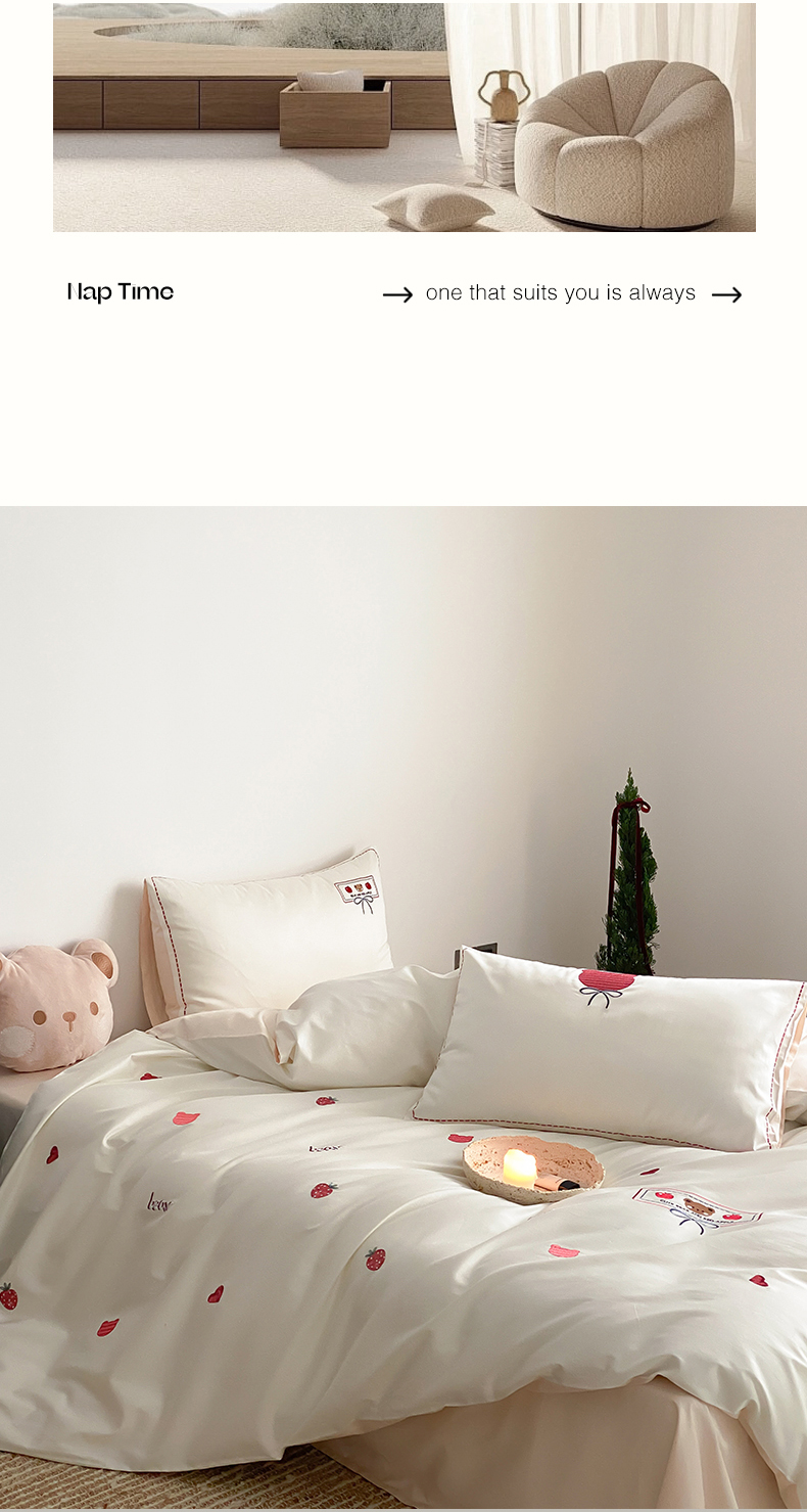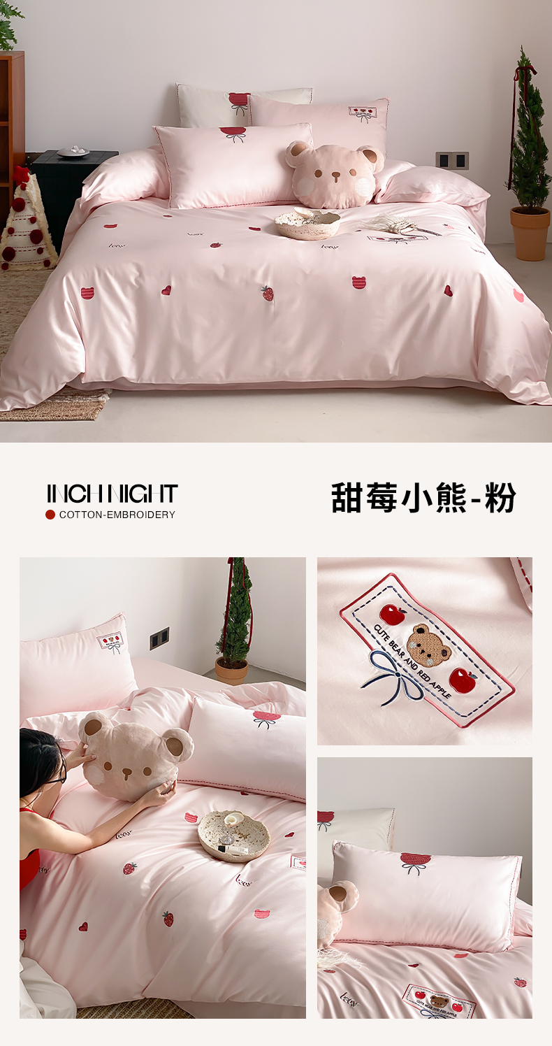 当前位置: 91家纺网 > 商品网购 > 床品套件 > 四件套 > 长绒棉四件套 > 极简 2026新款100s长绒棉刺绣四件套-甜莓小熊 甜莓小熊-白