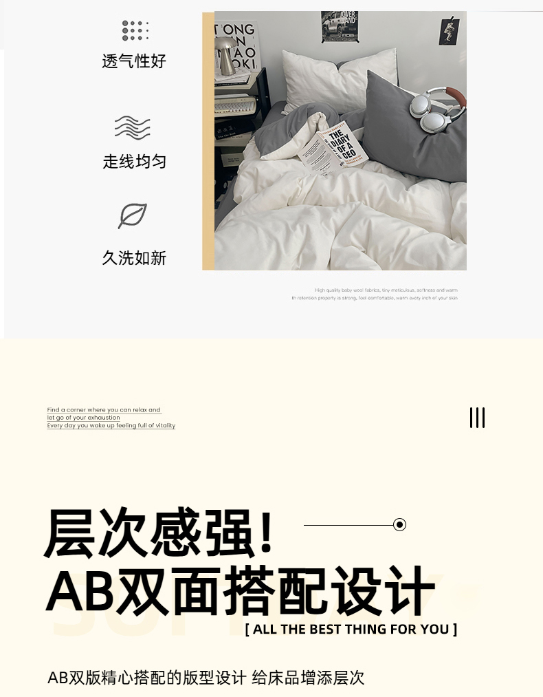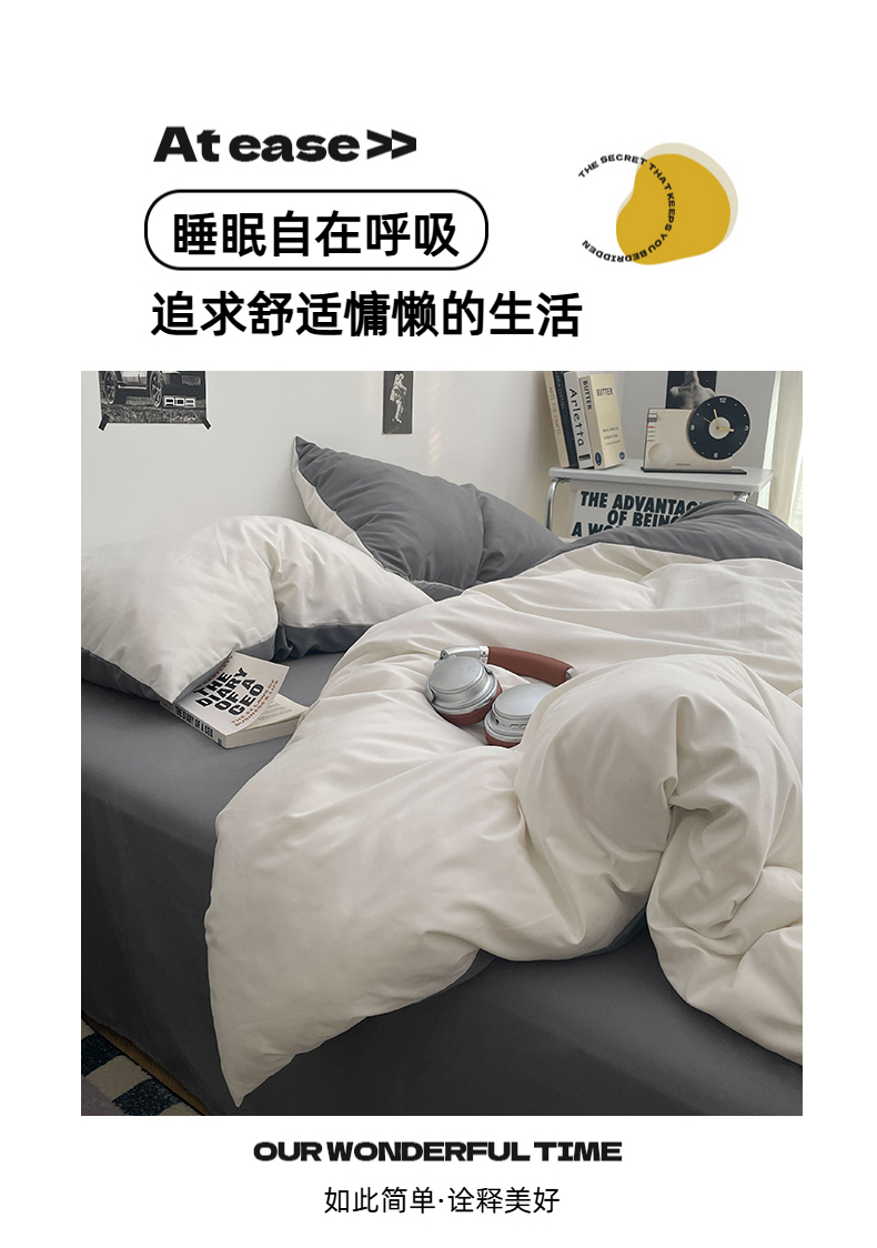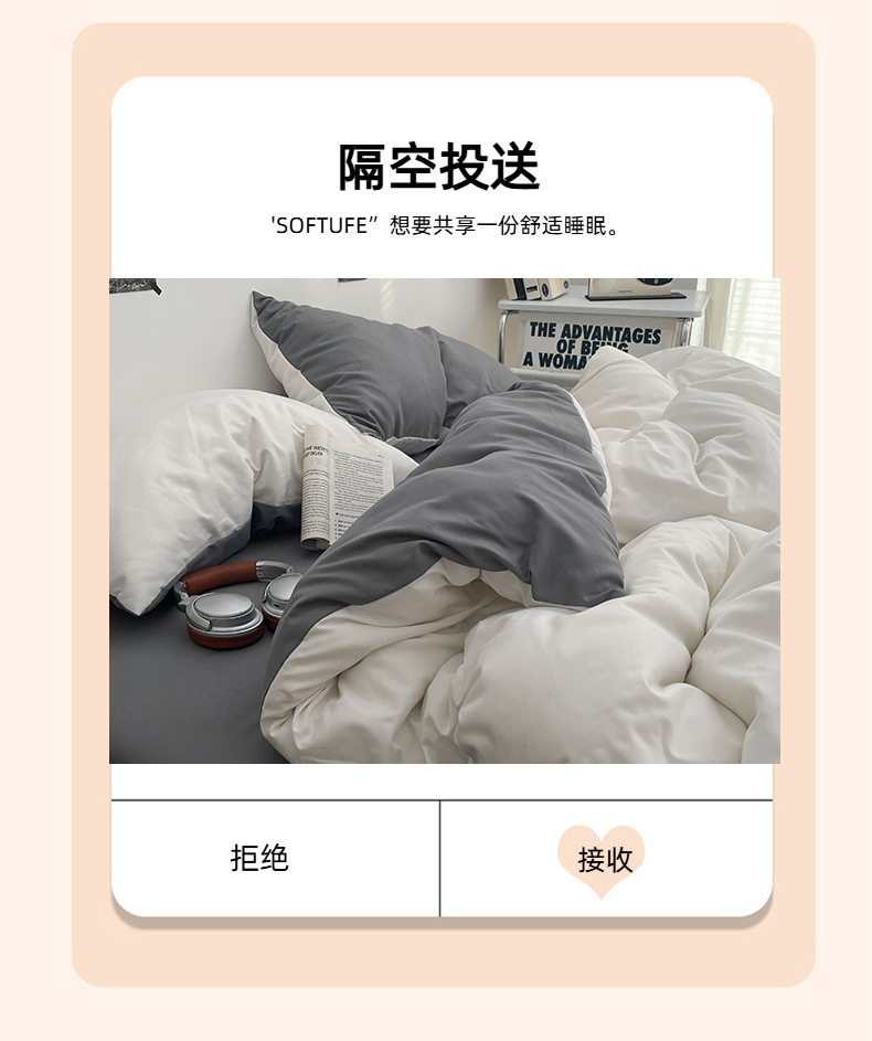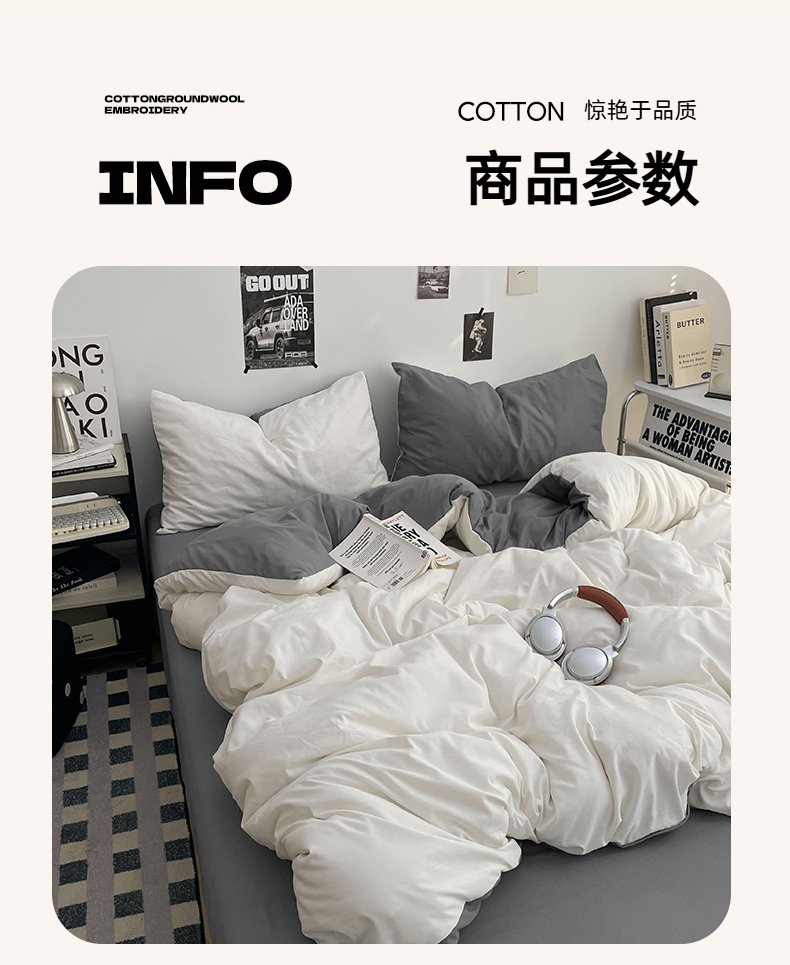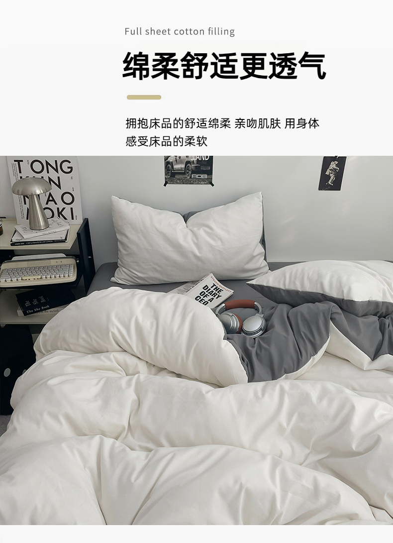 • 91家纺网 家纺一手货源 找家纺 贝拉梦家纺 2026新款无印风高克重加厚云感棉三件套四件套单被套系列 雾屿白灰