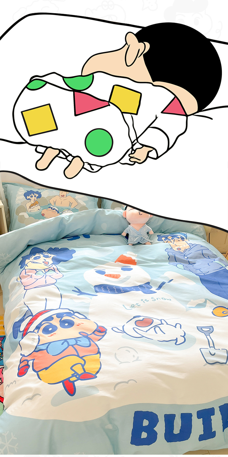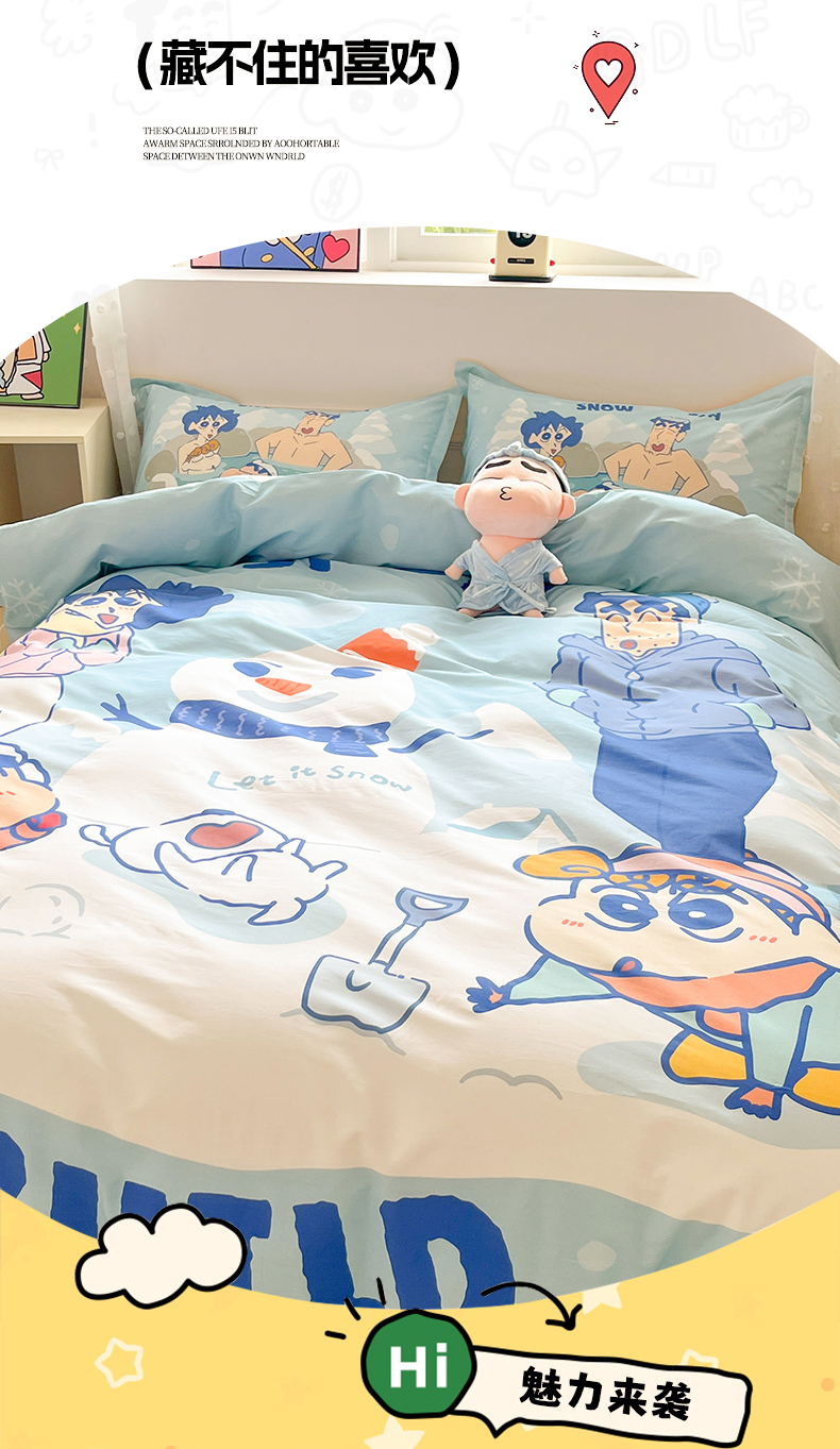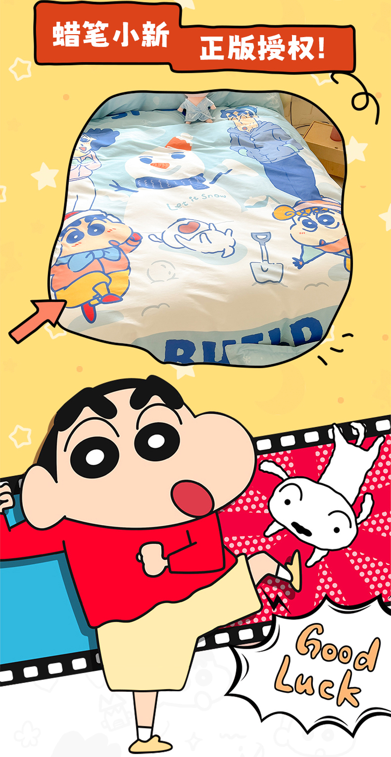 当前位置: 91家纺网 > 商品网购 > 床品套件 > 四件套 > 全棉普通四件套 > 博雅 2026新款蜡笔小新正版授权全棉纯棉大版四件套 大版-顽皮冬日小新