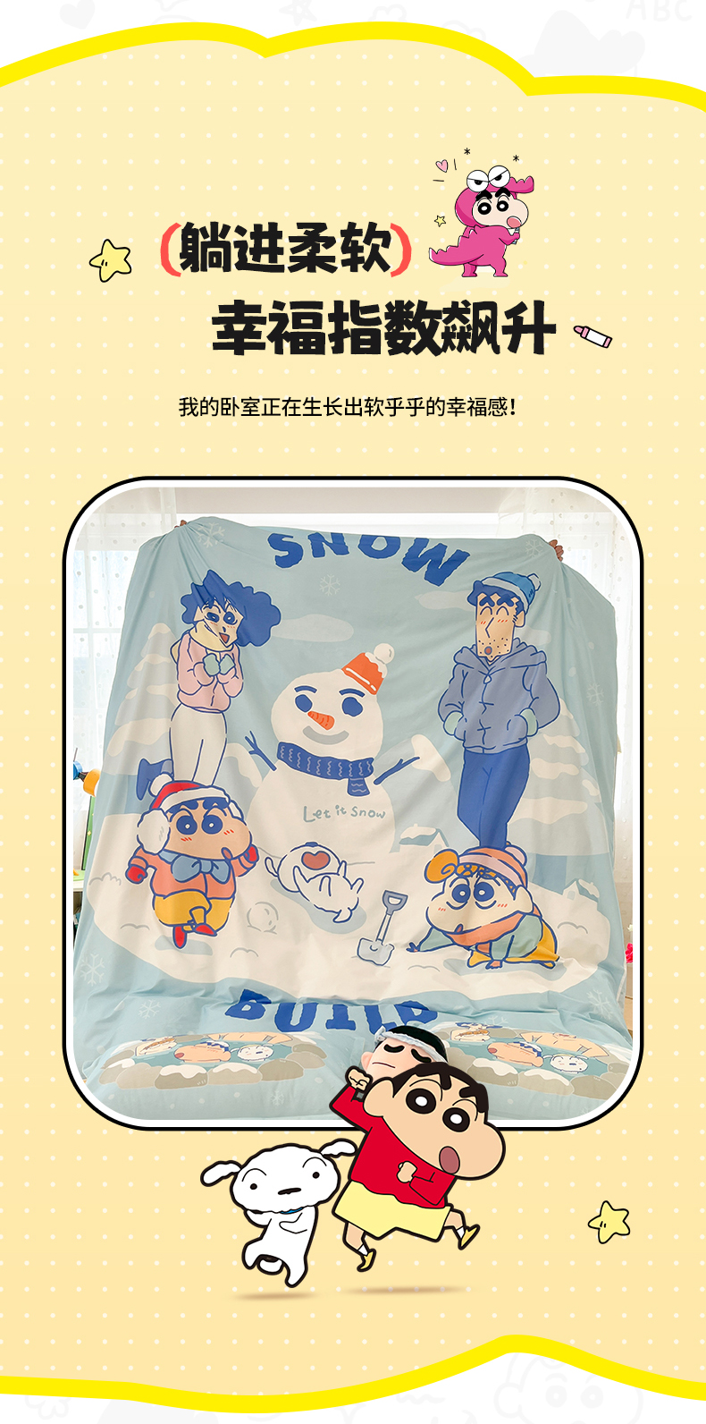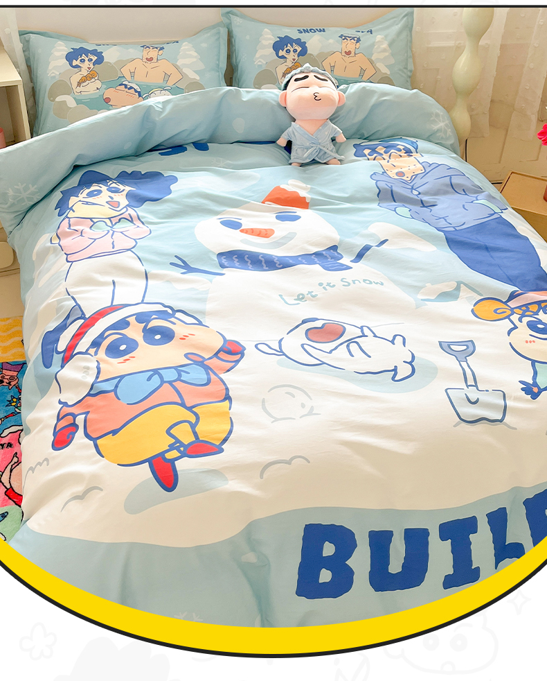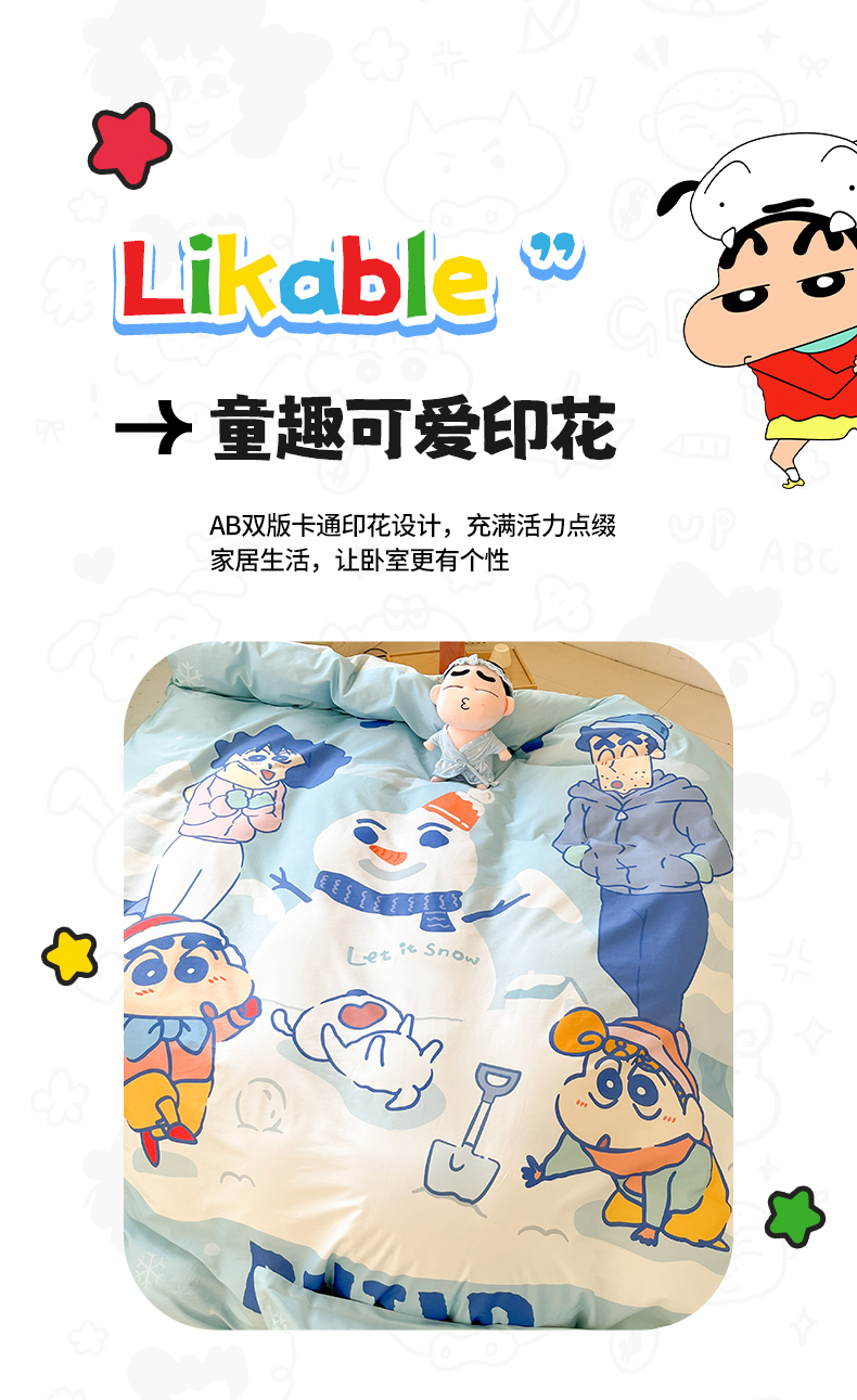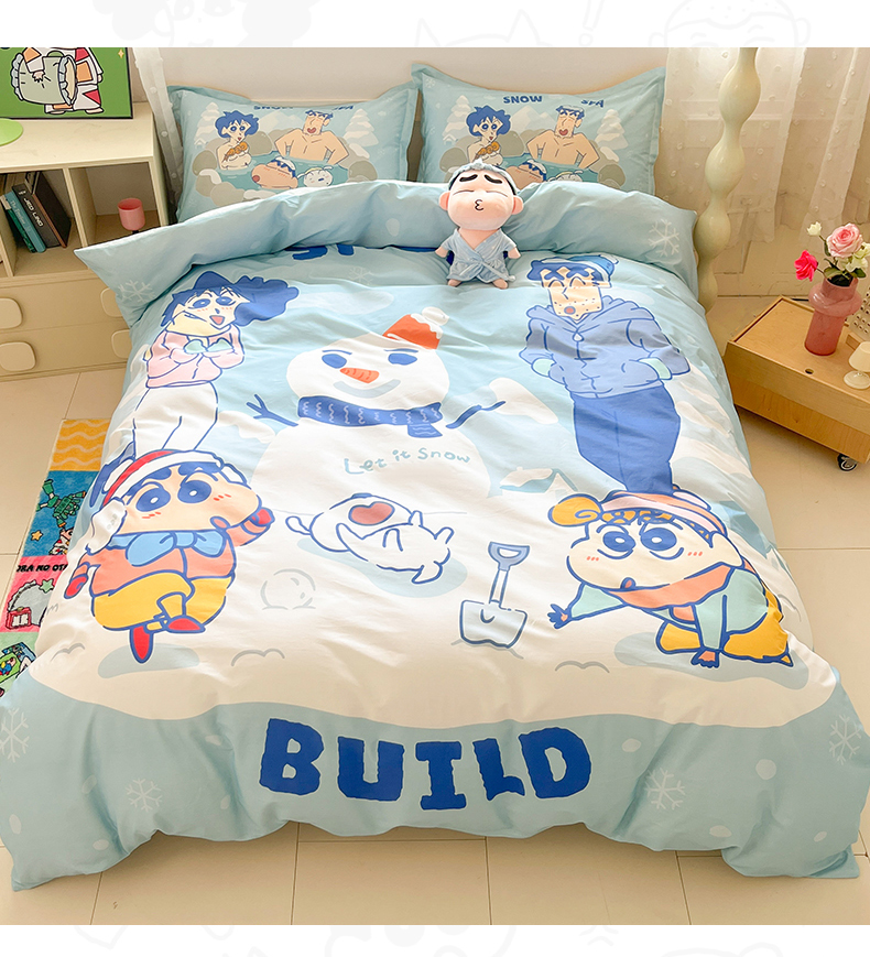 当前位置: 91家纺网 > 商品网购 > 床品套件 > 四件套 > 全棉普通四件套 > 博雅 2026新款蜡笔小新正版授权全棉纯棉大版四件套 大版-顽皮冬日小新