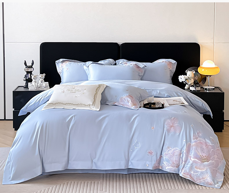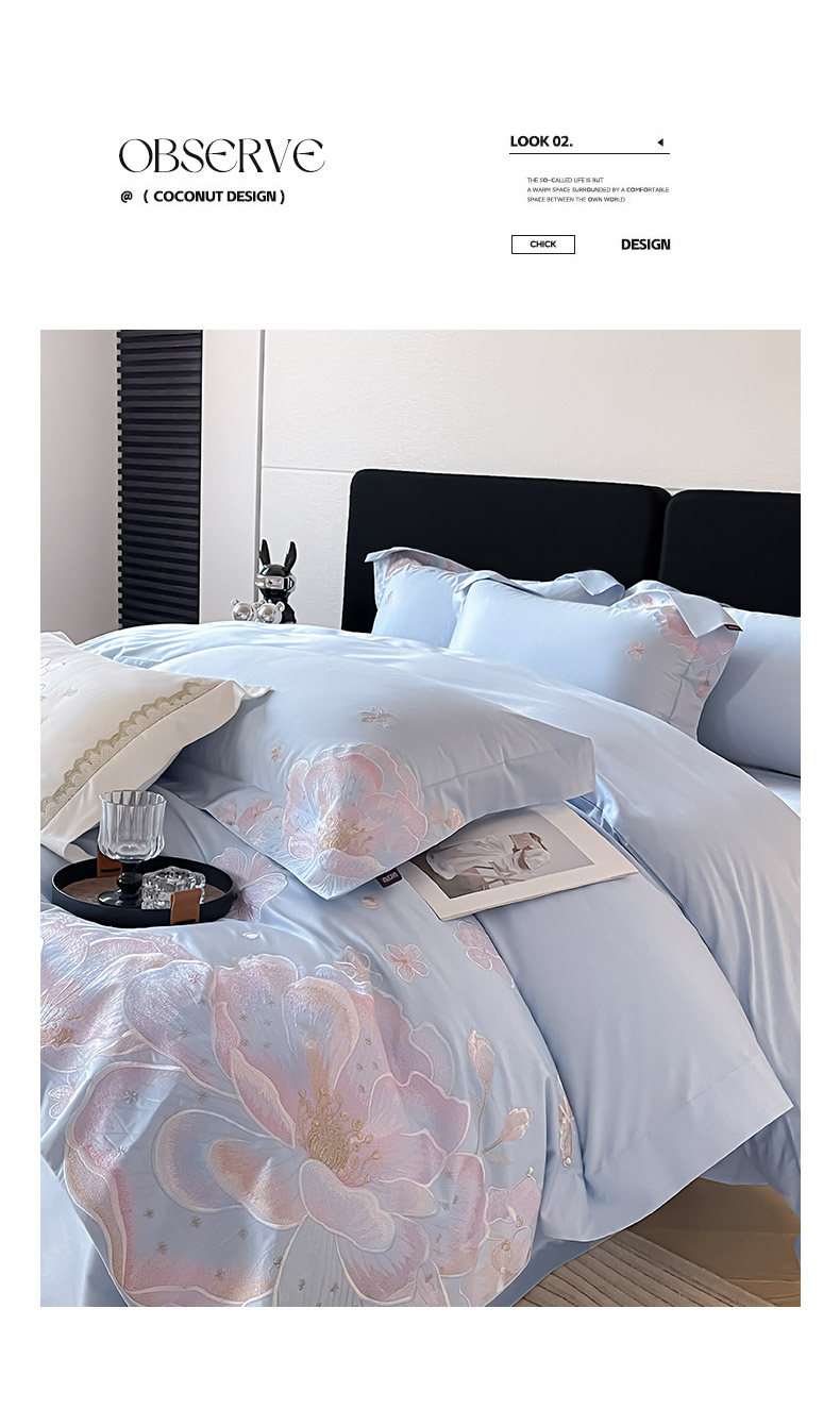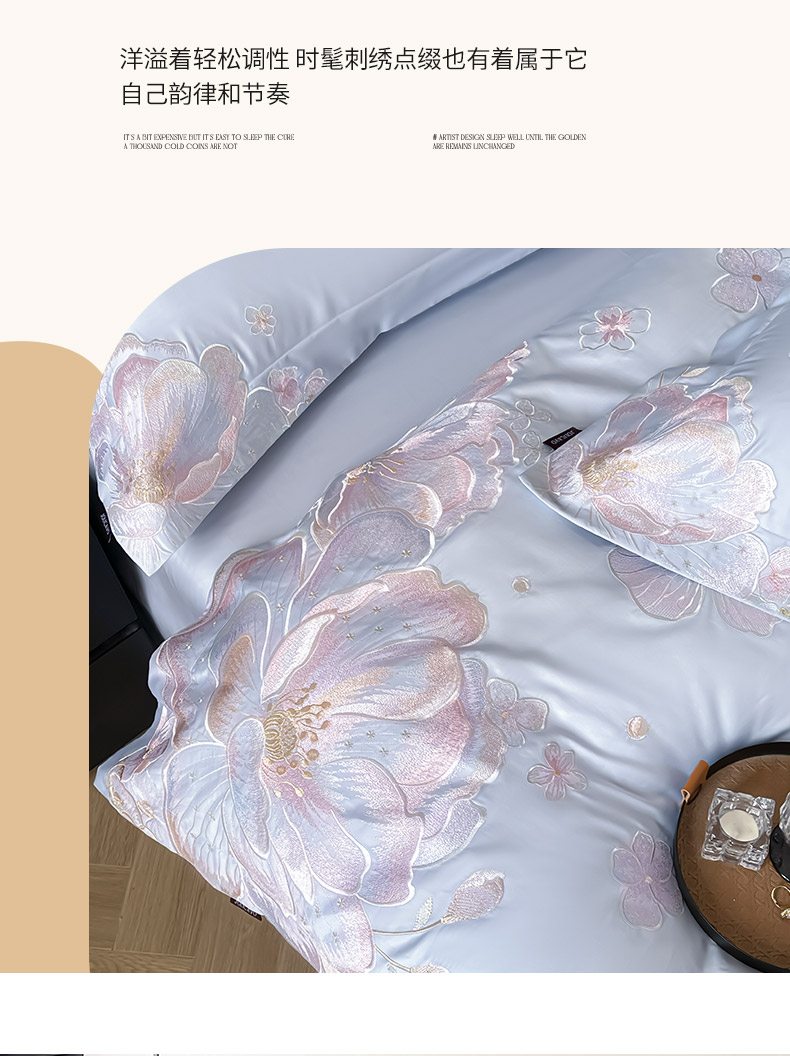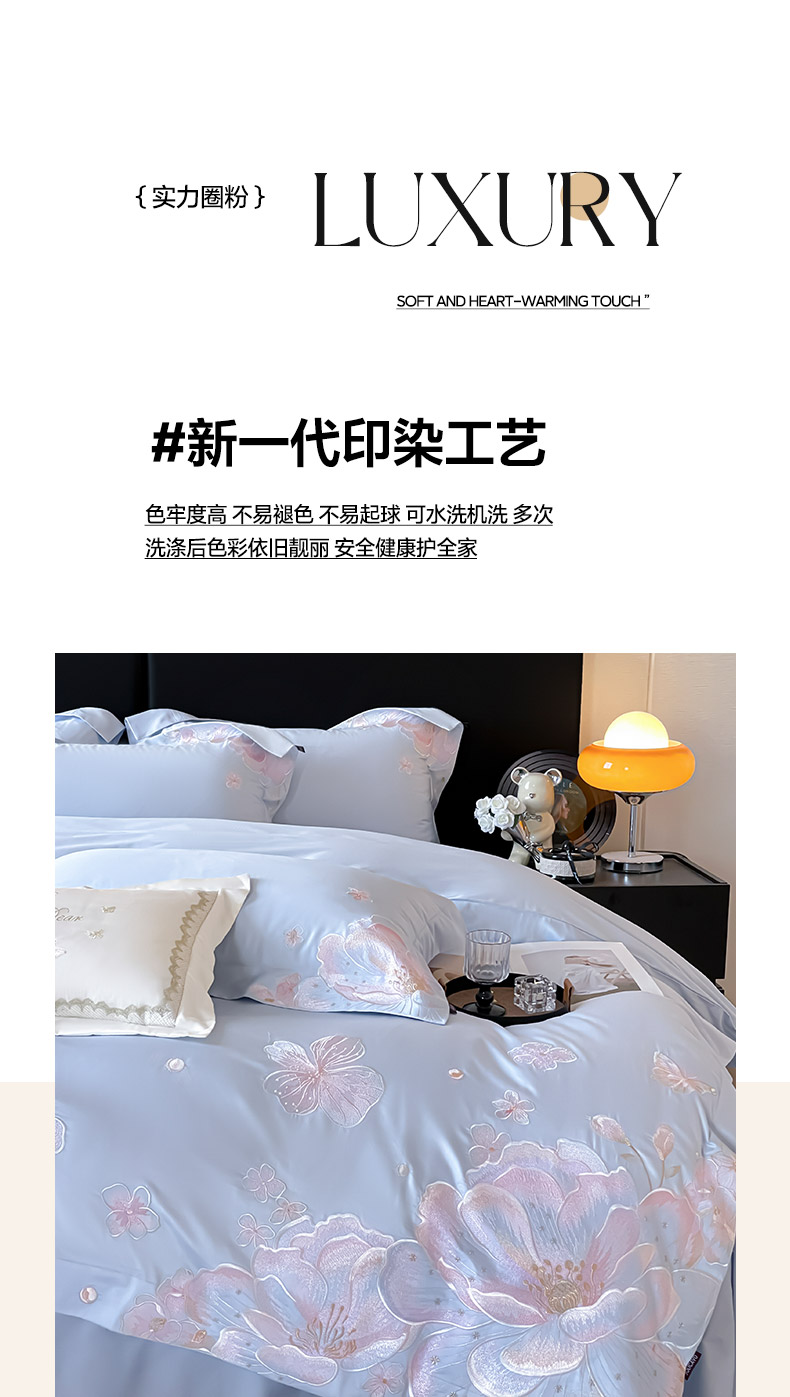 2026马年特惠新品A类长绒棉纯棉四件套100全棉重工刺绣被套床单床笠轻奢高级感床上用品-花之语 花之语-慕蓝