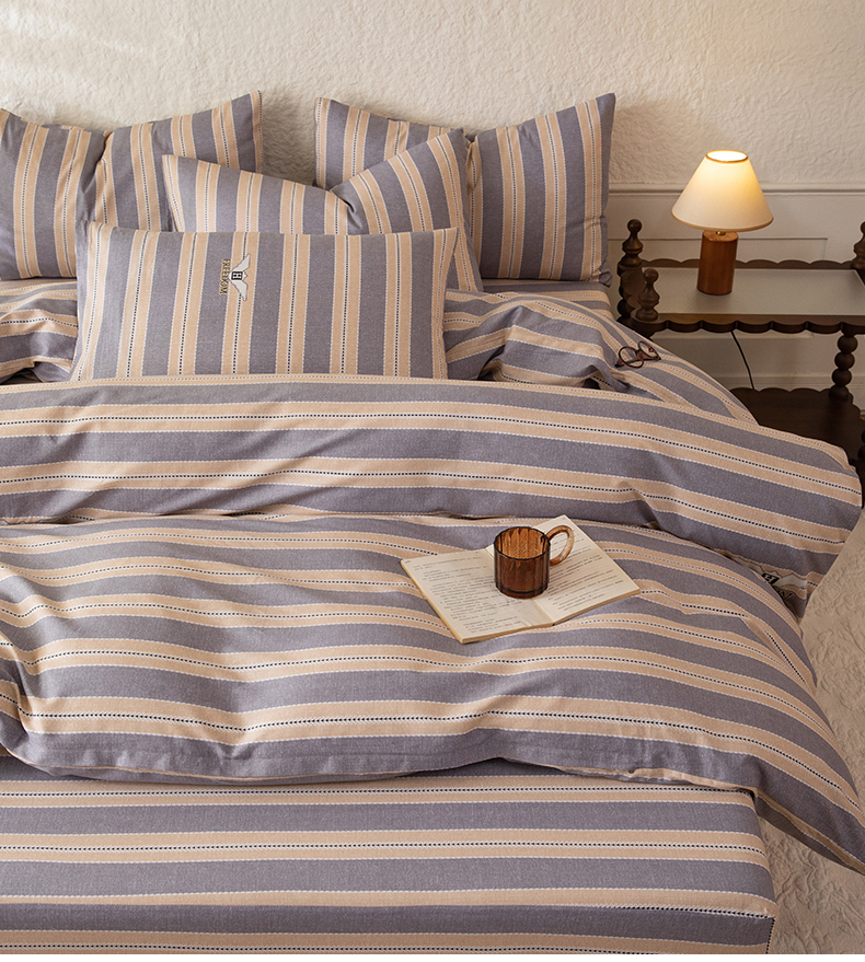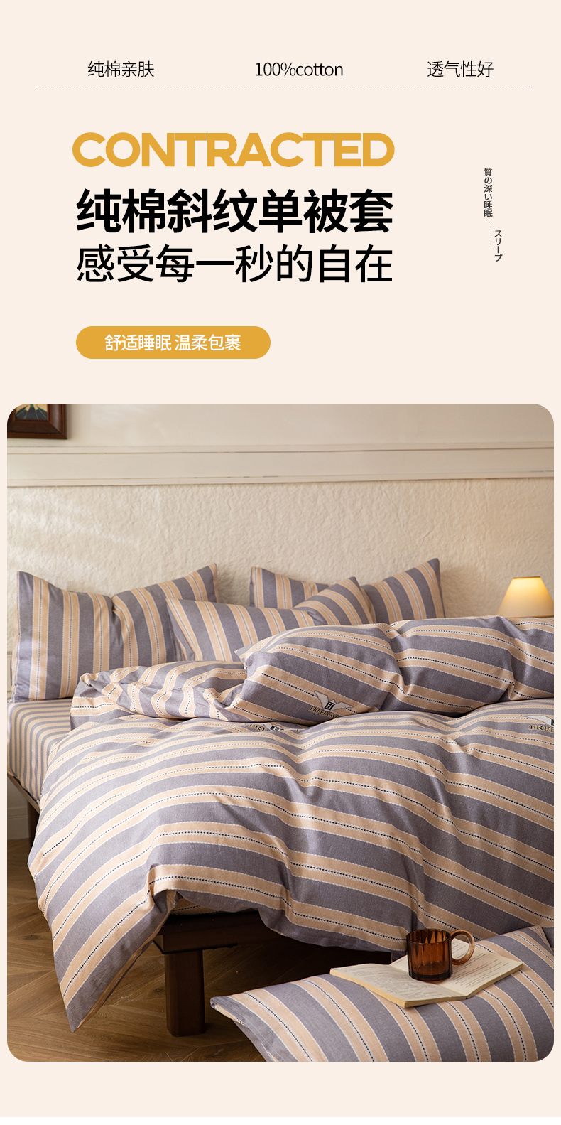 商品名称:八十八家纺 2026新款无印风全棉纯棉斜纹条格单被套被套单件单品被套 木本