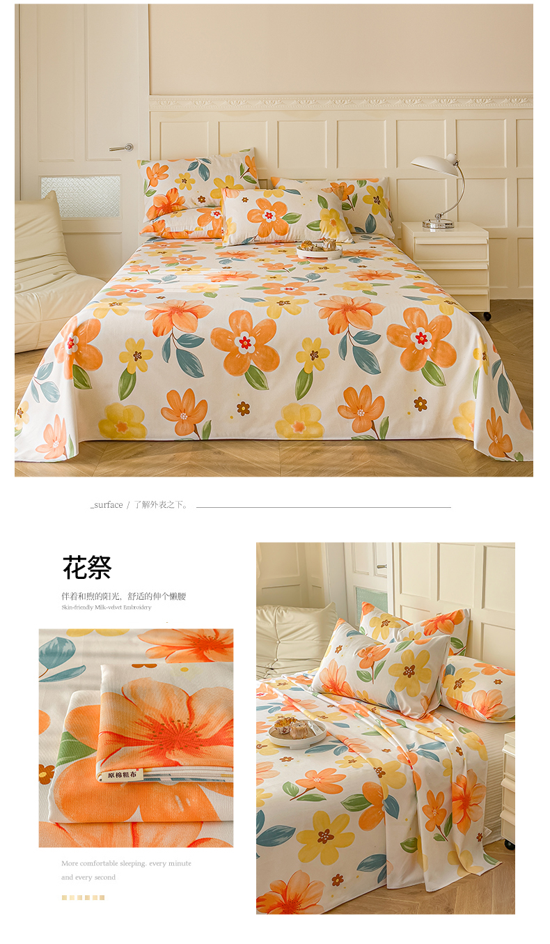 • 91家纺网 家纺一手货源 找家纺 首爱家纺 2026新款爆款印花原棉老粗布床单 暖心绒语