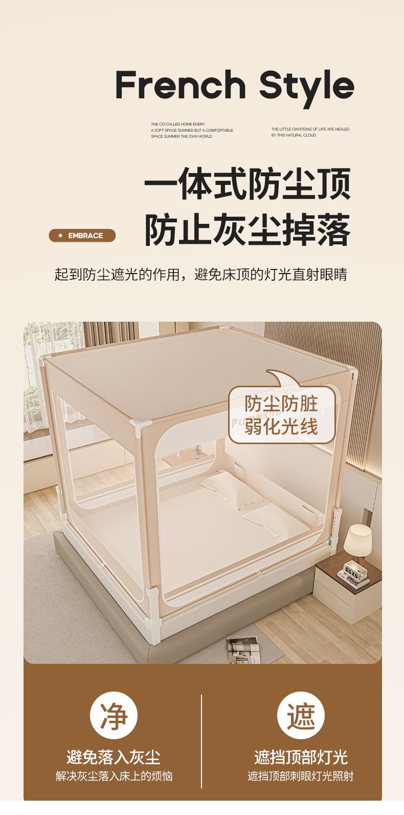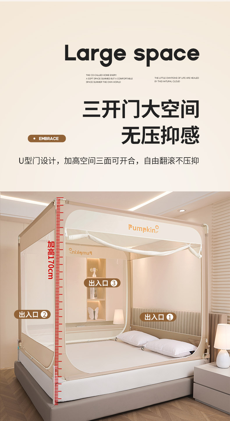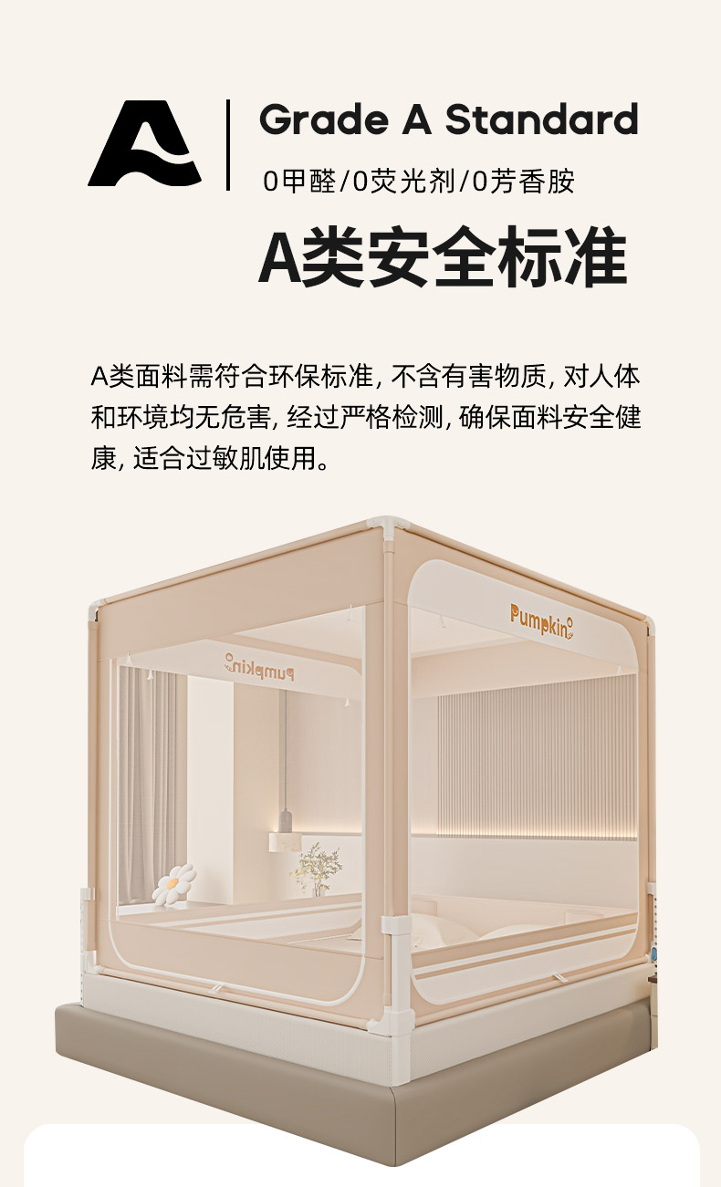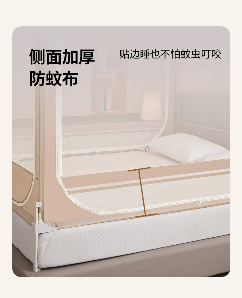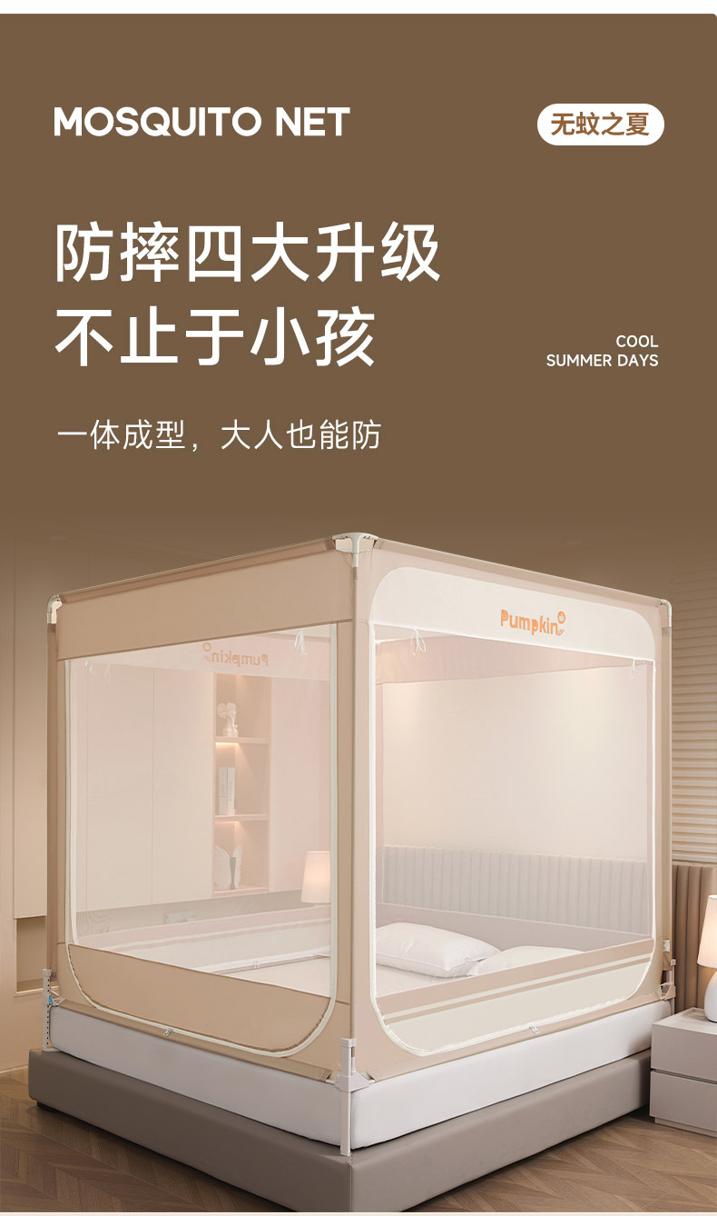 当前位置: 91家纺网 > 商品网购 > 床上用品 > 蚊帐 > 坐床式蚊帐 > 海虹蚊帐 2026新款2601外穿杆三开U型门一体防尘顶加密纱回底床笠款防摔蚊帐 字母咖