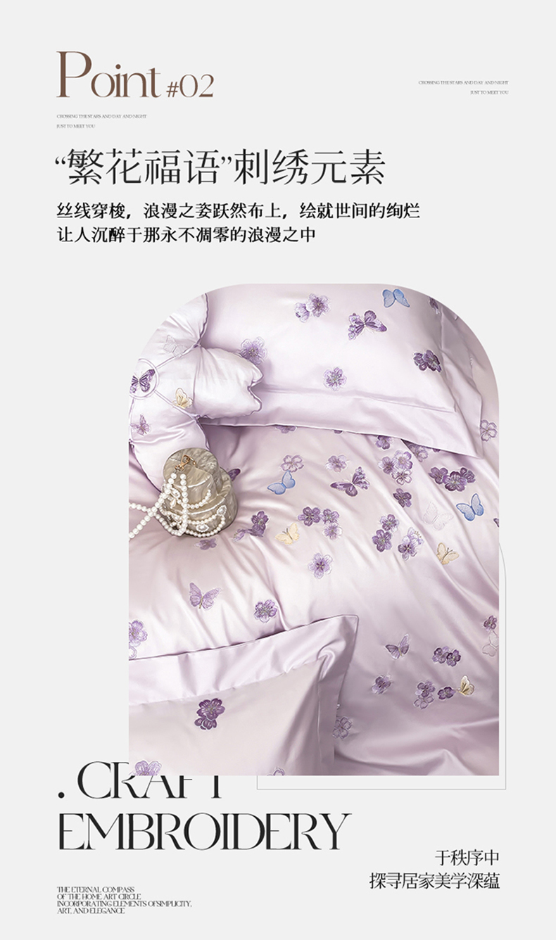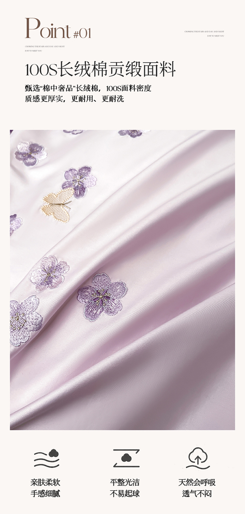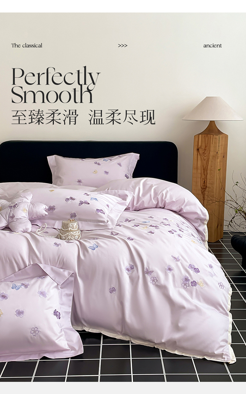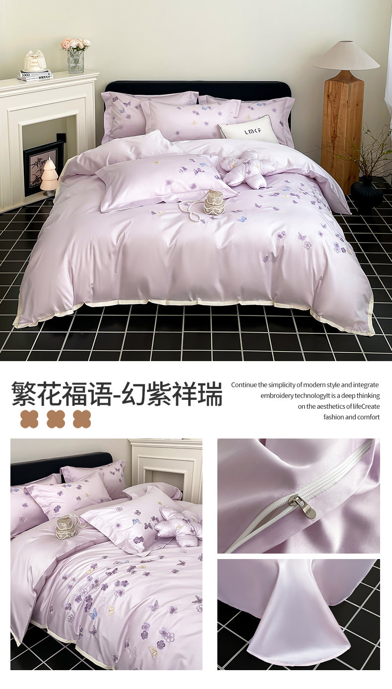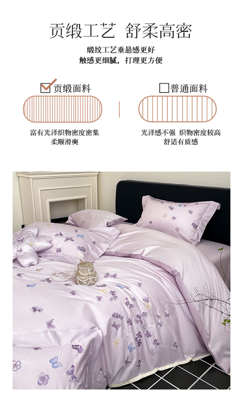 商品名称:蓝米卡夫 2026春季新款-100S长绒棉贡缎刺绣系列四件套-繁花福语(礼盒) 繁花福语-幻紫祥瑞