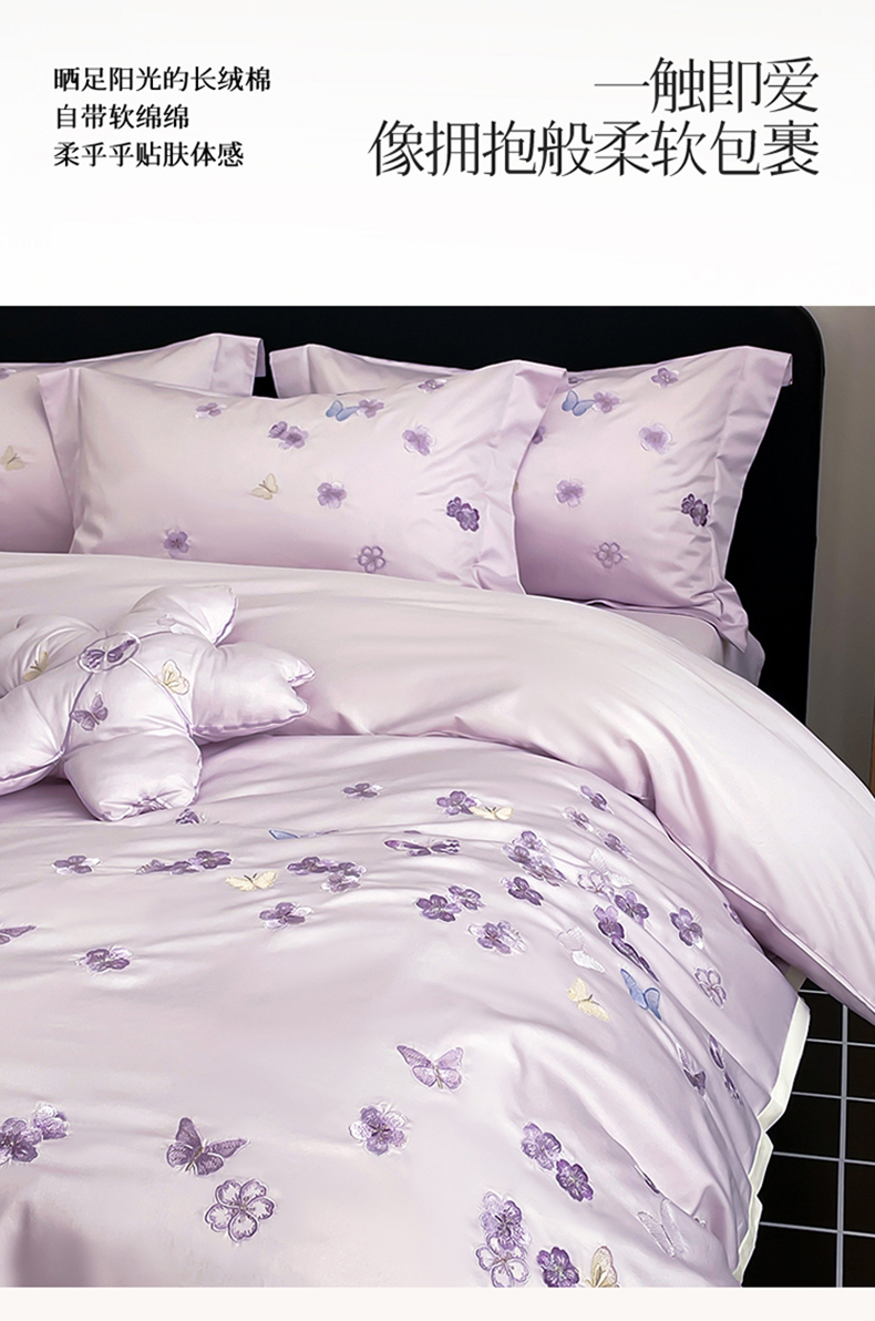 (总)蓝米卡夫 2026春季新款-100S长绒棉贡缎刺绣系列四件套-阿勒泰福蝶(礼盒),阿勒泰福蝶-芝士奶茶,阿勒泰福蝶-梦幻紫韵,阿勒泰福蝶-桃粉蜜桃
