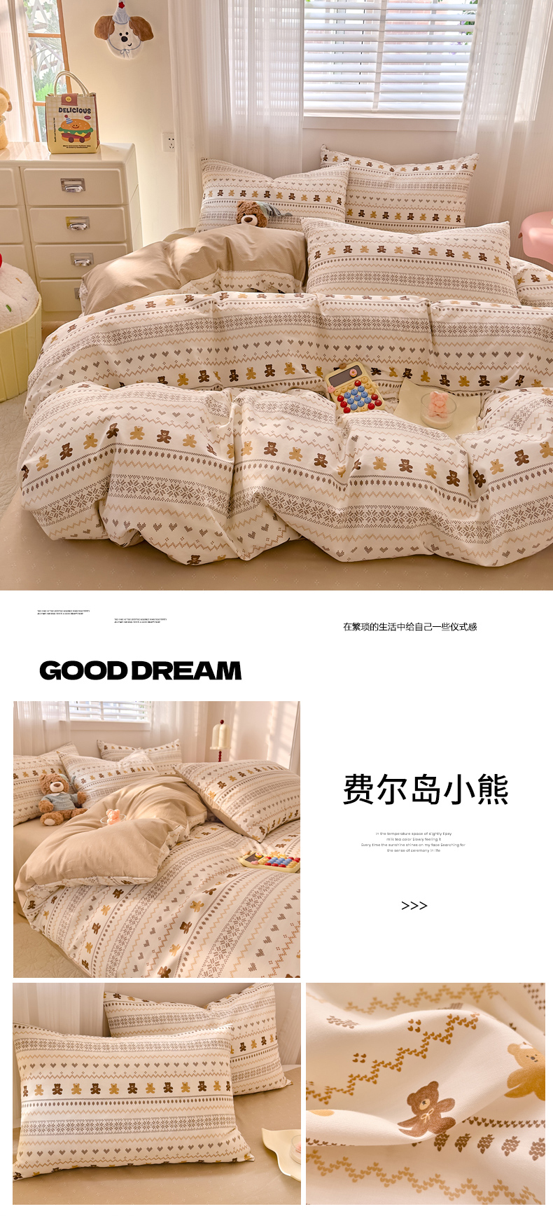 当前位置: 91家纺网 > 商品网购 > 床品套件 > 四件套 > 全棉普通四件套 > DoDo 兜兜 2026春夏新款全棉纯棉可爱卡通四件套 费尔岛小熊