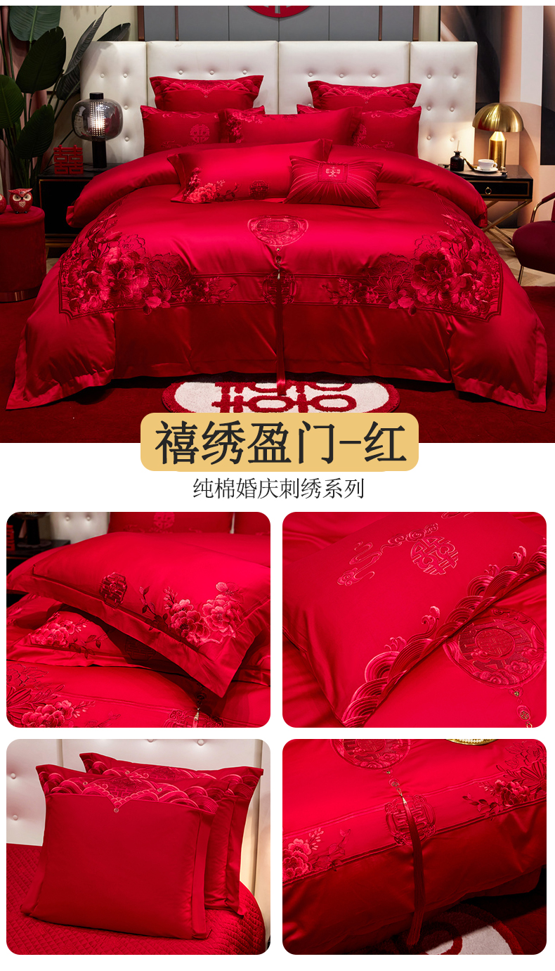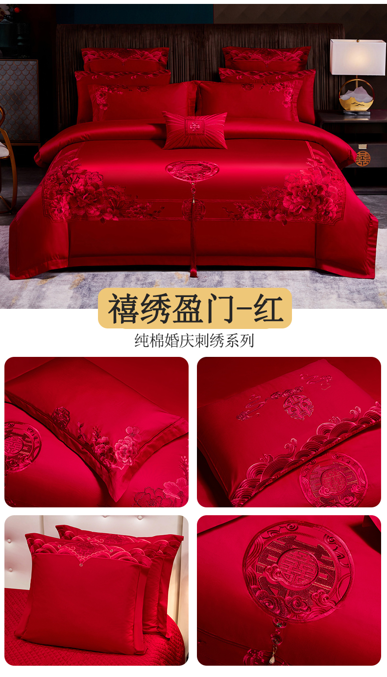(总)红番天婚庆 2025新款全棉刺绣新中式婚庆四件套多件套,莱奥,艾米丽,双喜嫁到,玫瑰之城 红,喜事登门,心愿,新梦巴黎,浪漫喜悦,东方喜事,喜乐-金,爱之蜜语,安藤丽娜,花田喜事,满满爱心,御赐芳华,百花齐放,百花齐放-时尚,真情挚爱,甜蜜恋人,龙凤喜事,相亲相爱,玫瑰恋语,百子旺禧,传奇龙凤,比心,欣喜,喜乐-红,巴黎之爱,花样柔情-金,幸福喜嫁-金,比翼新婚,欢喜结缘,甜甜蜜蜜,真情涌动,白首不渝,喜福临门,花语,新婚富贵,花开万里,亦蝶-中国红
