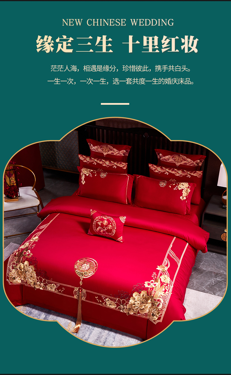 (总)红番天婚庆 2026新款全棉刺绣新中式婚庆四件套多件套