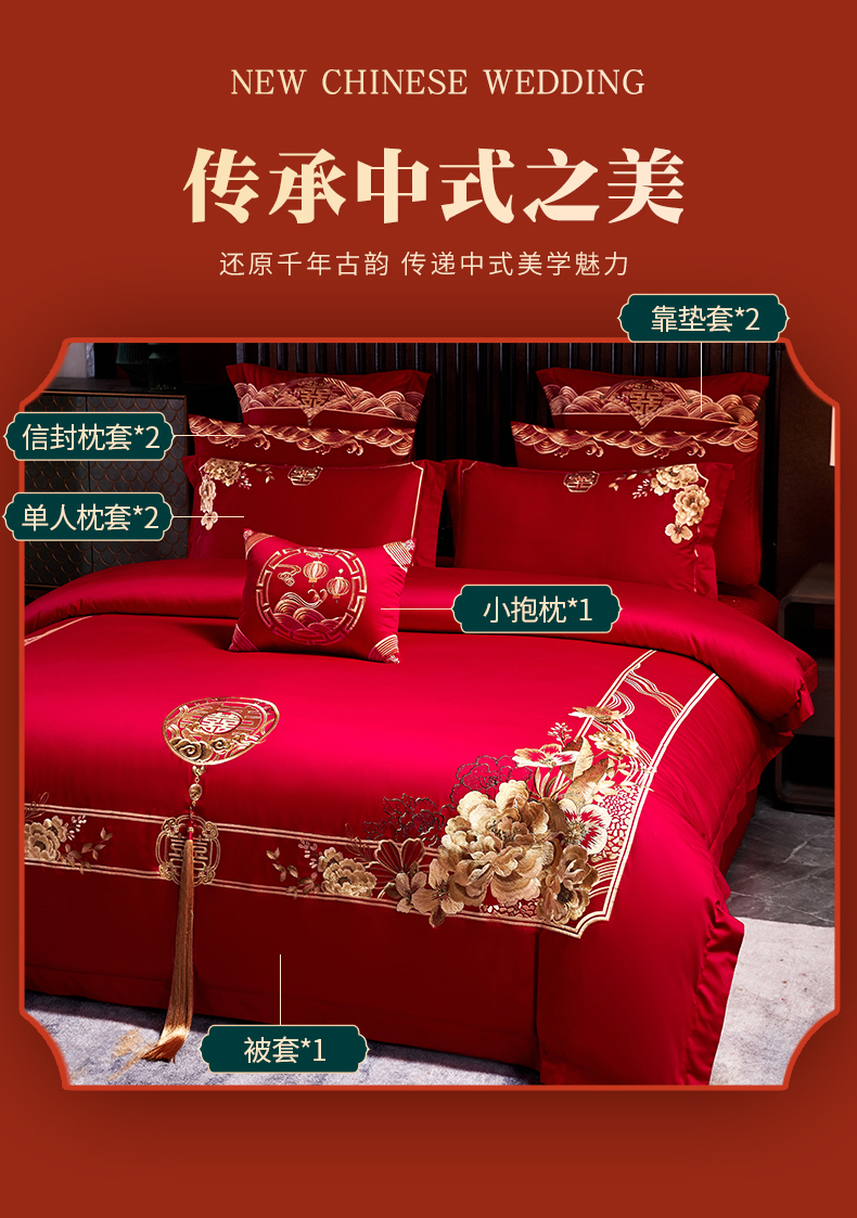 商品名称:(总)红番天婚庆 2026新款全棉刺绣新中式婚庆四件套多件套
