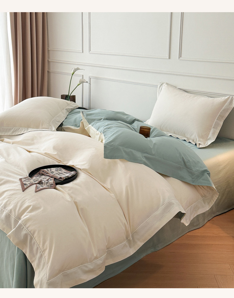 (总)万盛家纺 2026新款全棉40支极简风拼色四件套(居家风格),精致奶油-蜜糖粉,净蓝-蓝夕,蜜糖粉-冰河灰,浅灰-蜜糖粉