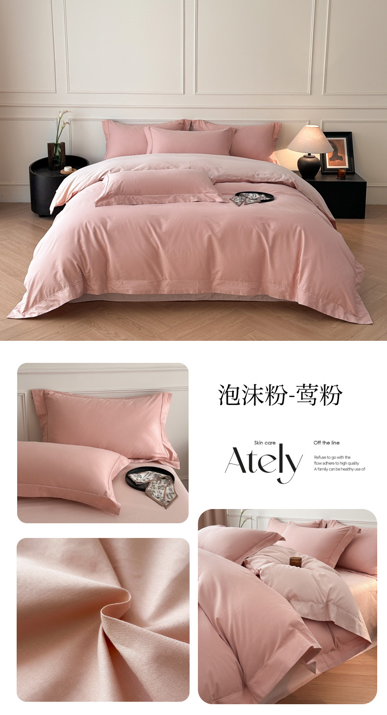 (总)万盛家纺 2026新款全棉40支极简风拼色四件套(无影墙风格),精致奶油-蜜糖粉,净蓝-蓝夕,浅灰-蜜糖粉,蜜糖粉-冰河灰