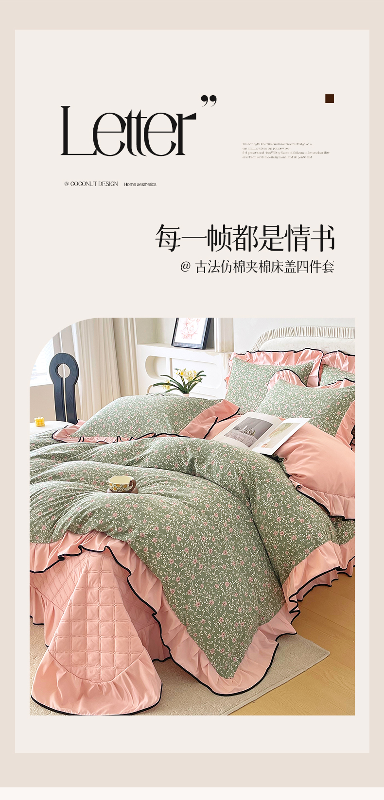 麦田家纺 2026新款花边床盖四件套 秘密花园