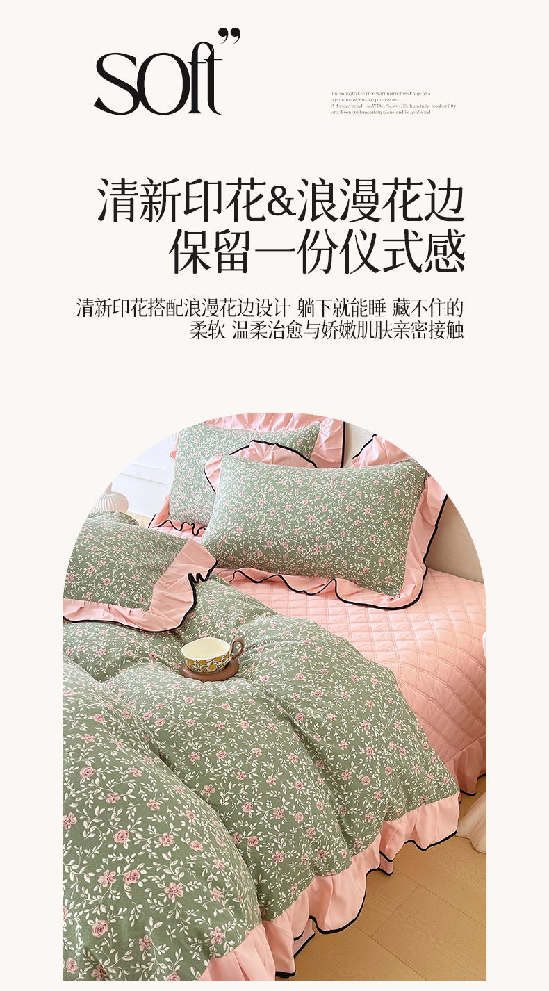 商品名称:麦田家纺 2026新款花边床盖四件套 秘密花园