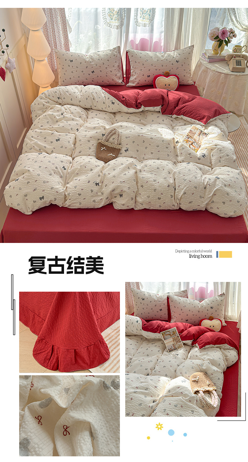 (总)铺尚美家纺 2026新款A类古法水洗仿棉云感纱四件套,萌兔小熊,安娜,波点熊,布丁狗,草莓啵啵,草莓熊-粉,草莓熊-蓝,丁香紫,格纹萌友团,格子熊,狗狗乐园,乖乖狗-灰,乖乖狗-玉,花园小猫,猫狗狂欢夜,玫瑰庄园,莫兰迪,奶绿牛油果,蔷薇花语,条纹小熊,小马星河,小奶团,星芒啵啵熊,雪花世界,英伦小木马,紫罗兰