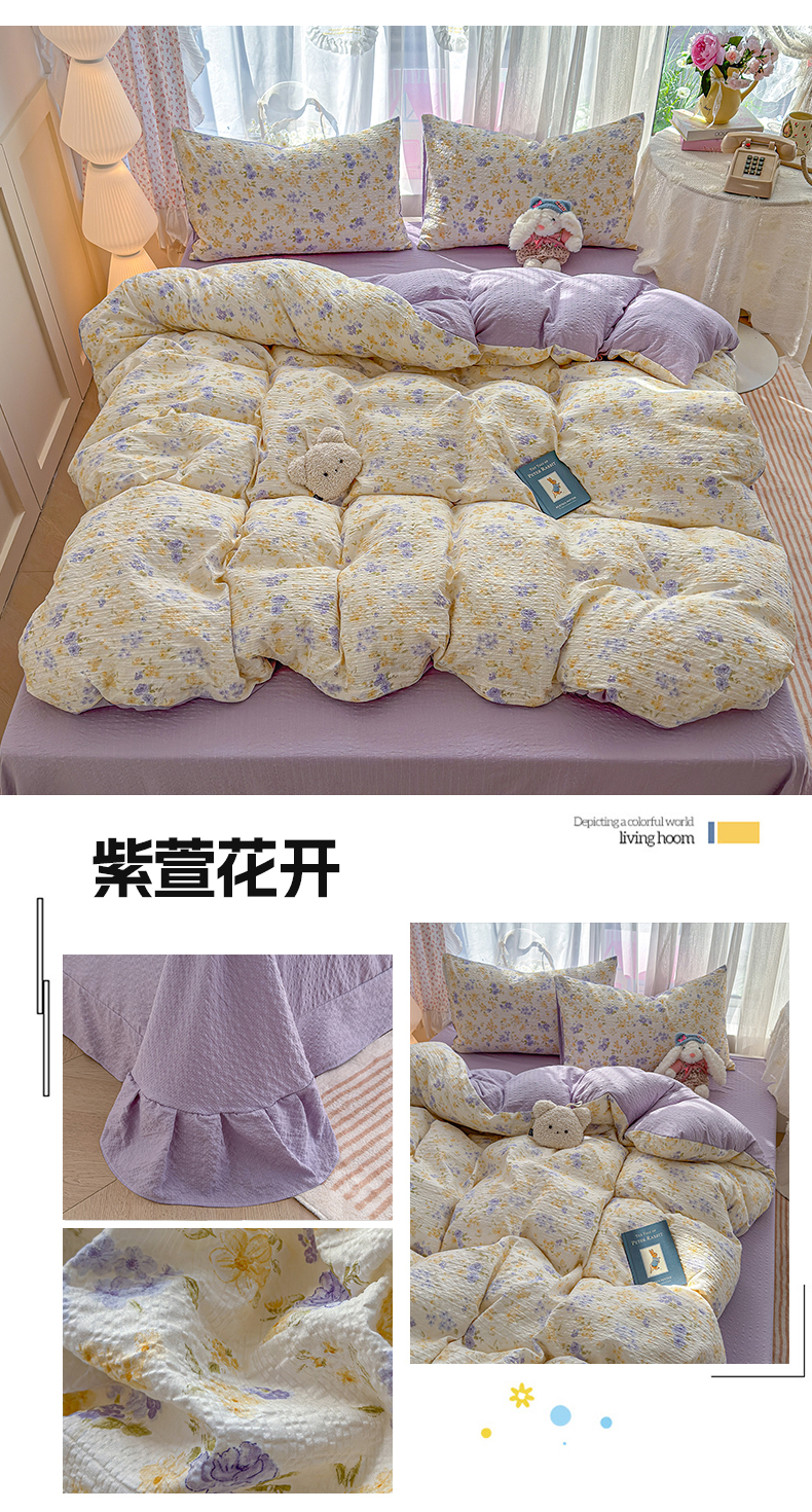 铺尚美家纺 2026春夏新品高克重A类泡芙纱泡泡皱皱纱四件套 侏罗纪