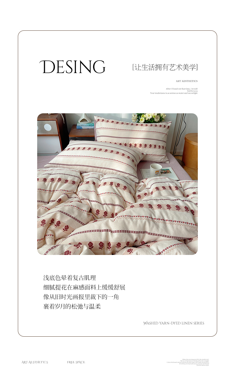 当前位置: 91家纺网 > 商品网购 > 床品套件 > 四件套 > 其它四件套 > 凯洛奇 2026新款色织麻水洗提花四件套-提供买家秀 心玫织语
