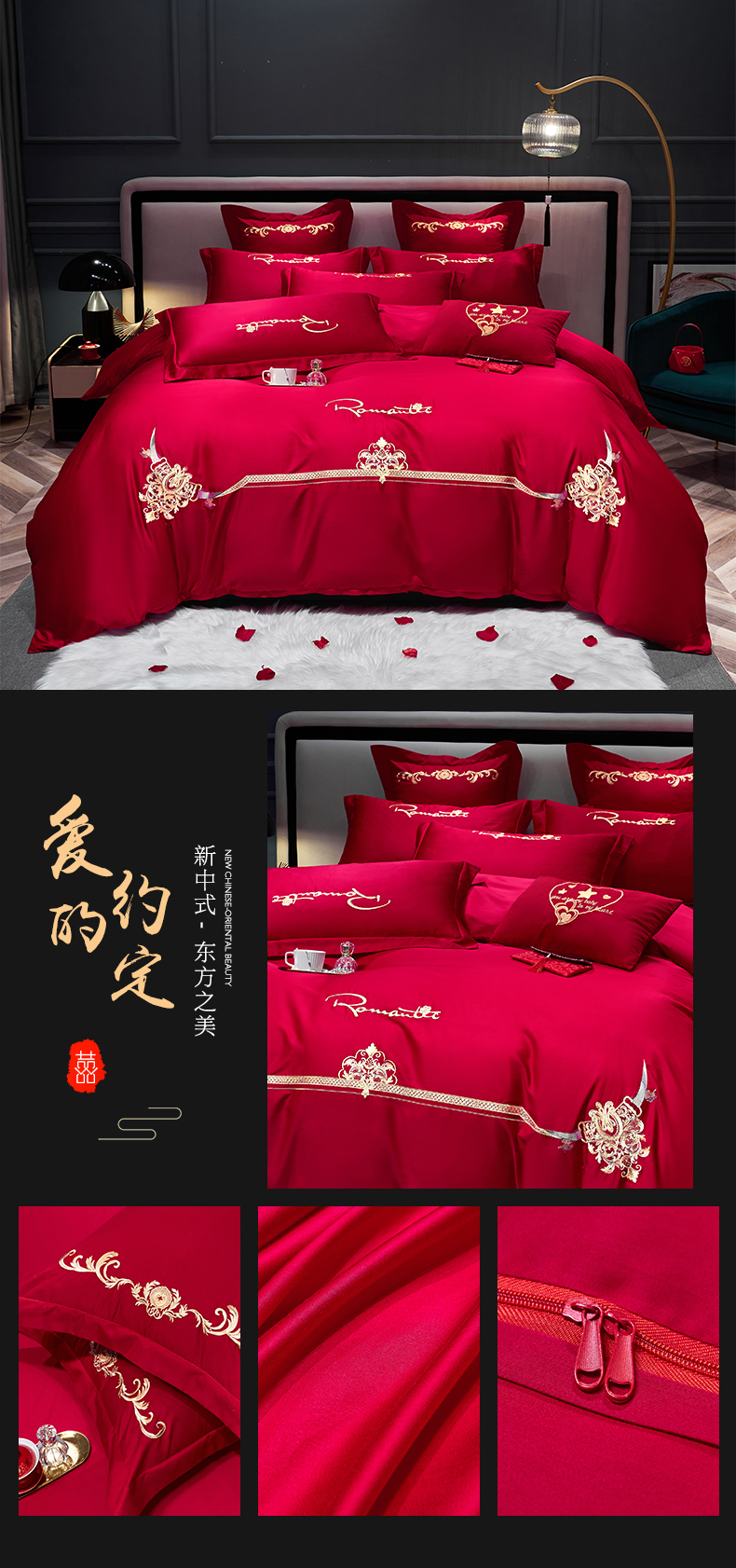 当前位置: 91家纺网 > 商品网购 > 床品套件 > 四件套 > 婚庆四件套 > 慕她家纺 2026年磨毛亲肤棉婚庆四件套大红色刺绣结床上用品 盛世庄园 孔雀兰