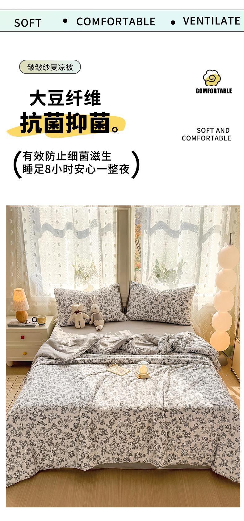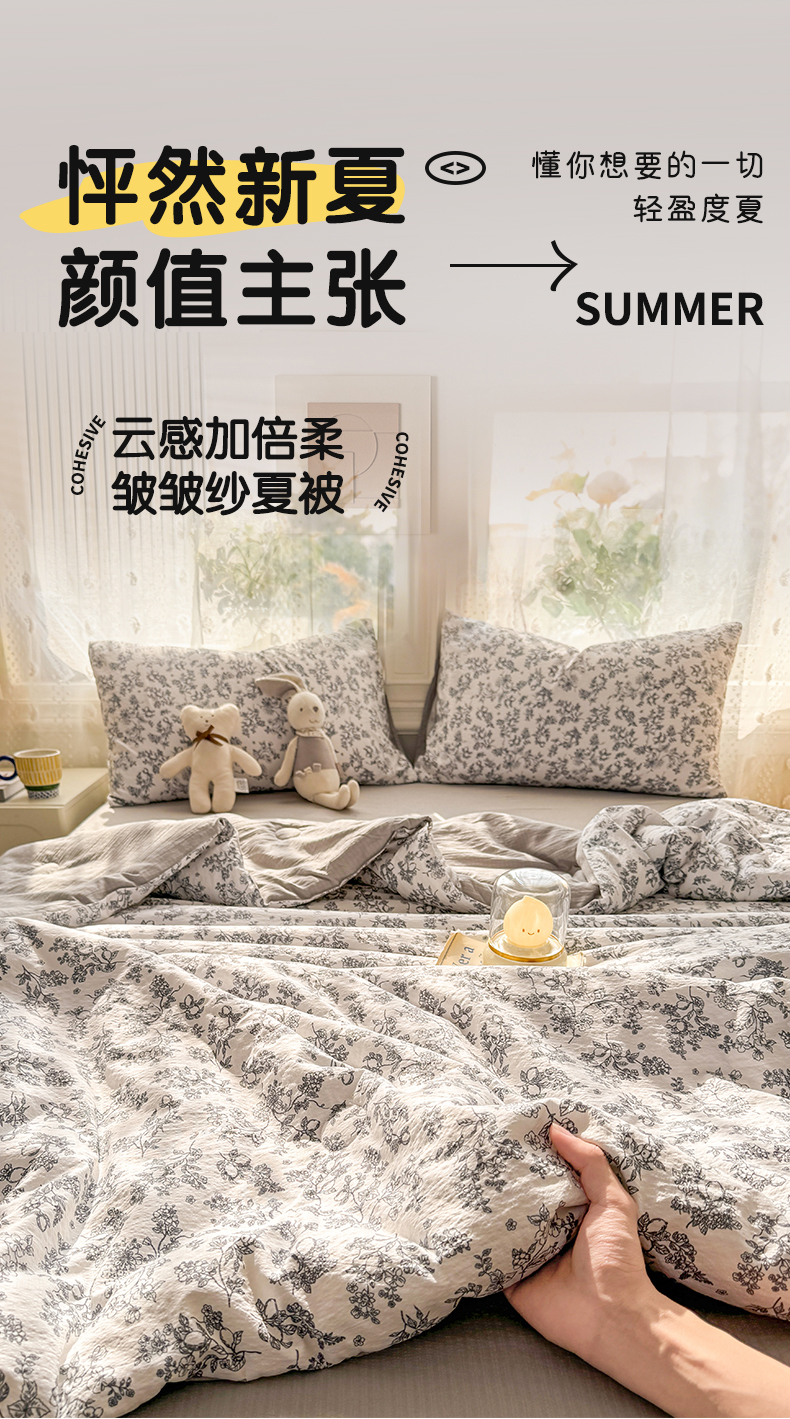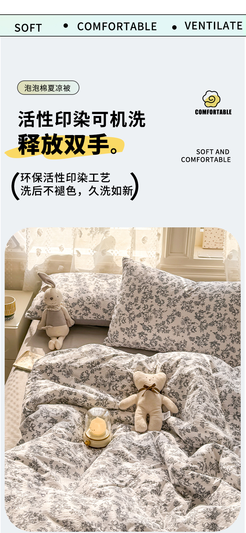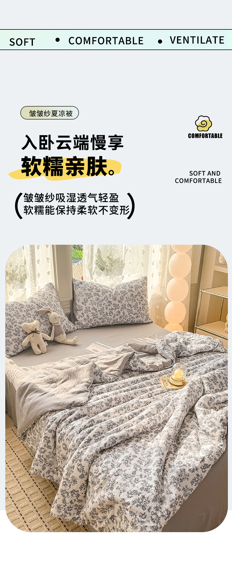 • 91家纺网 家纺一手货源 找家纺 丽美人家纺 2026春夏新款简单款皱皱纱夏被夏凉被空调被 花开漫漫