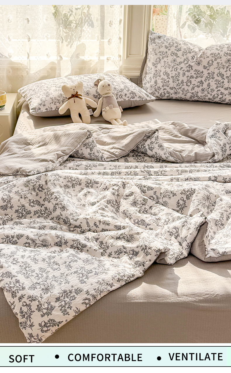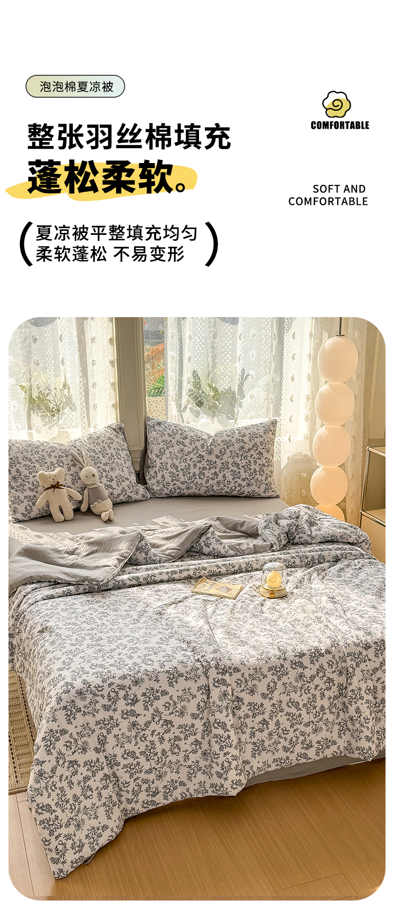 丽美人家纺 2026春夏新款简单款皱皱纱夏被夏凉被空调被 花开漫漫