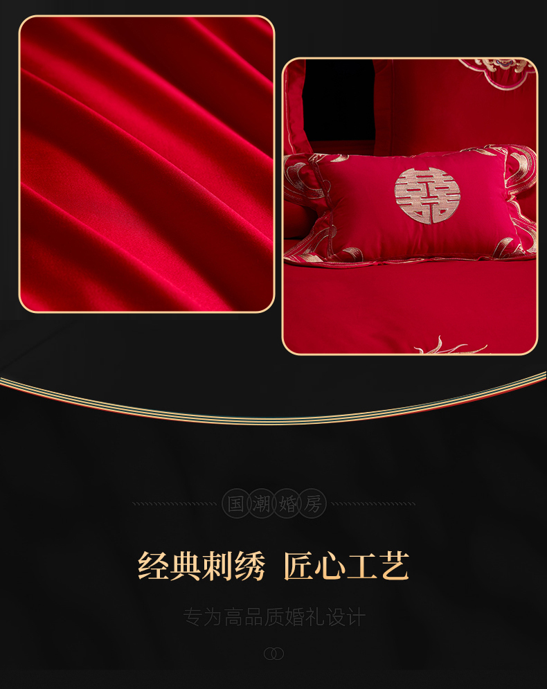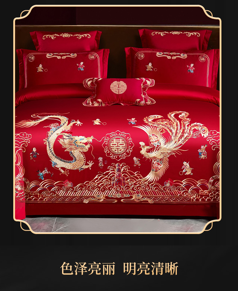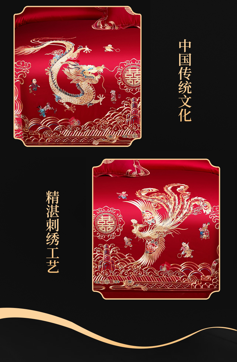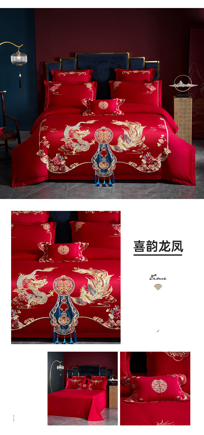 当前位置: 91家纺网 > 商品网购 > 床品套件 > 四件套 > 婚庆四件套 > 慕她家纺 2026年磨毛亲肤棉婚庆四件套大红色刺绣结床上用品 凤生百子