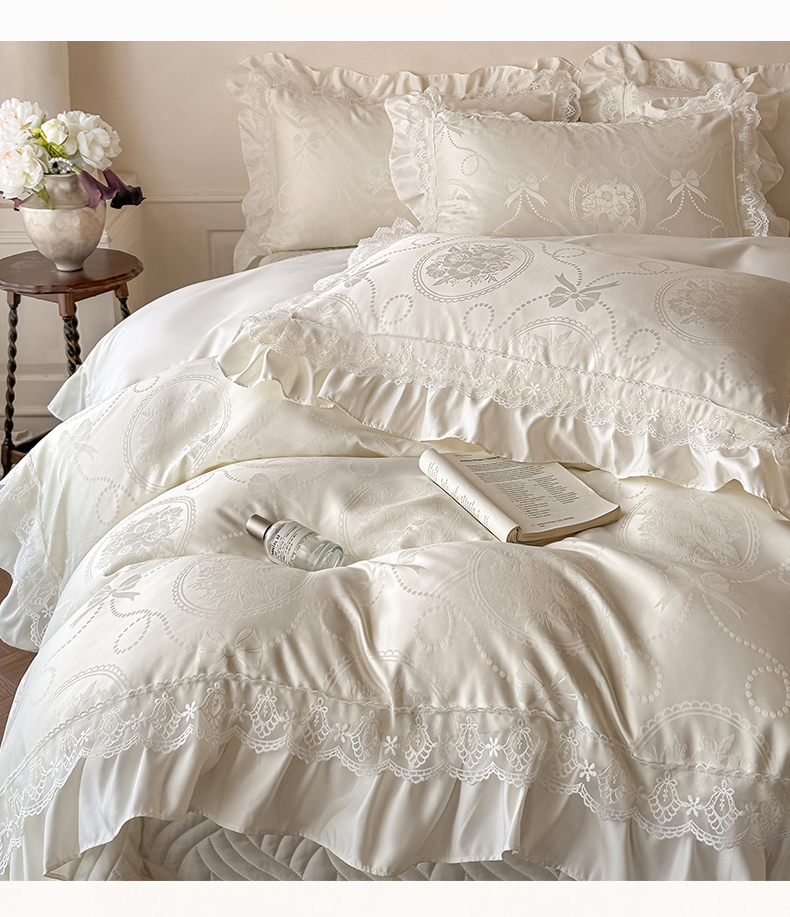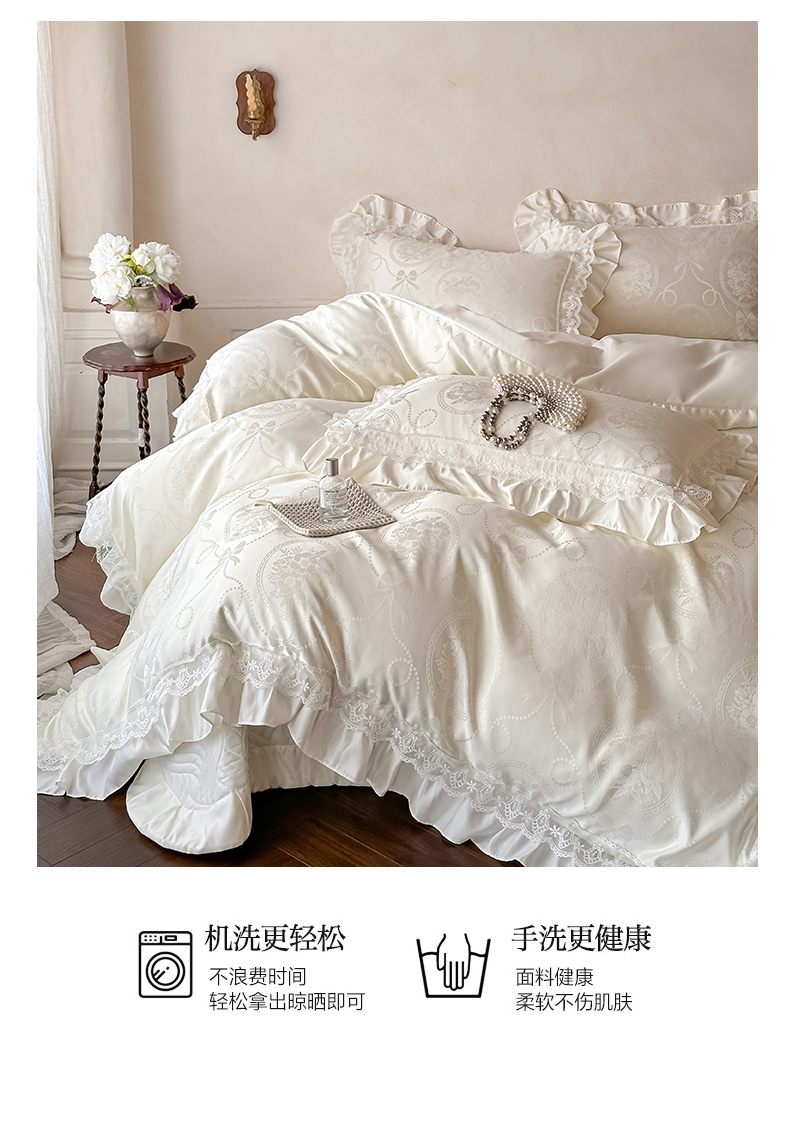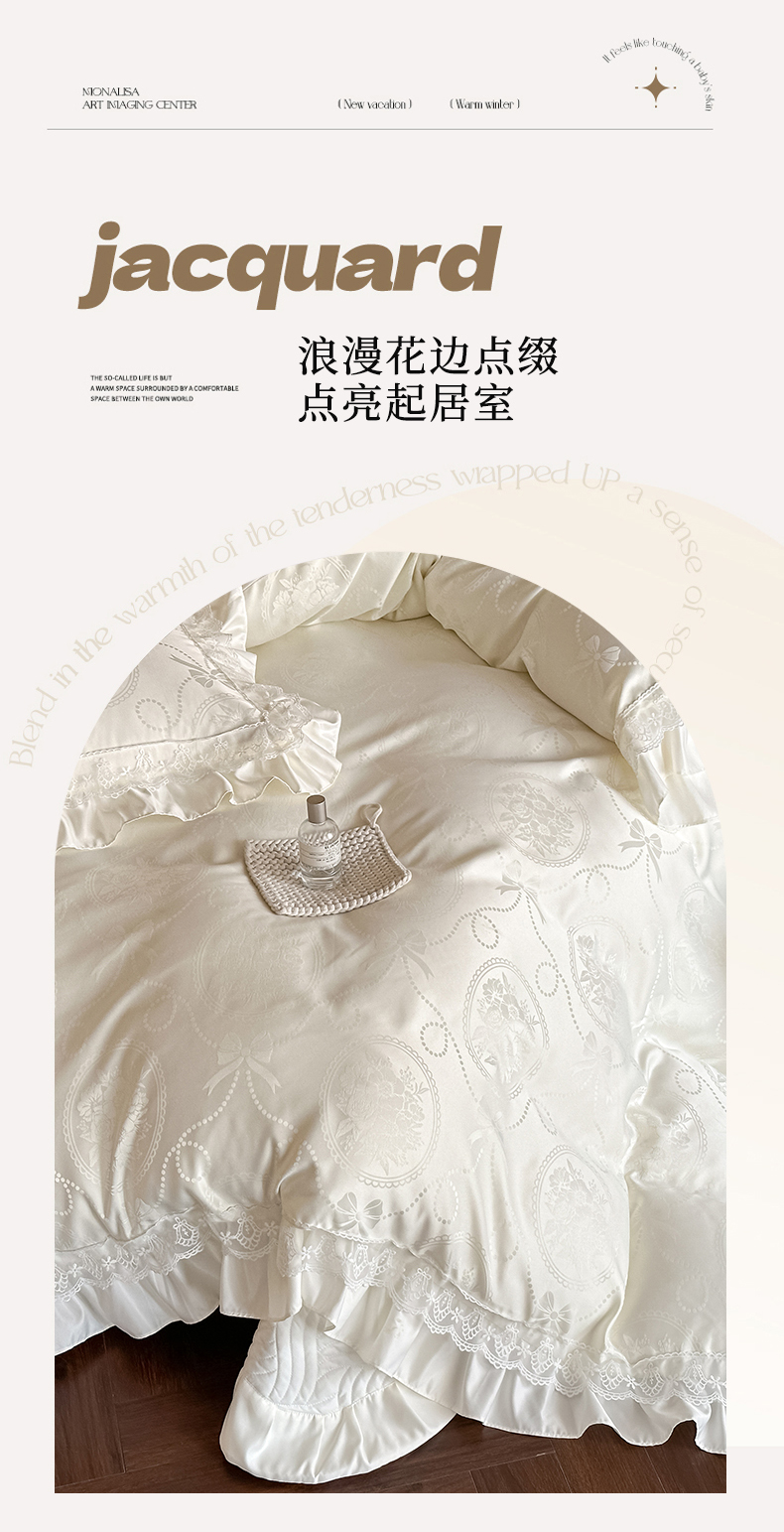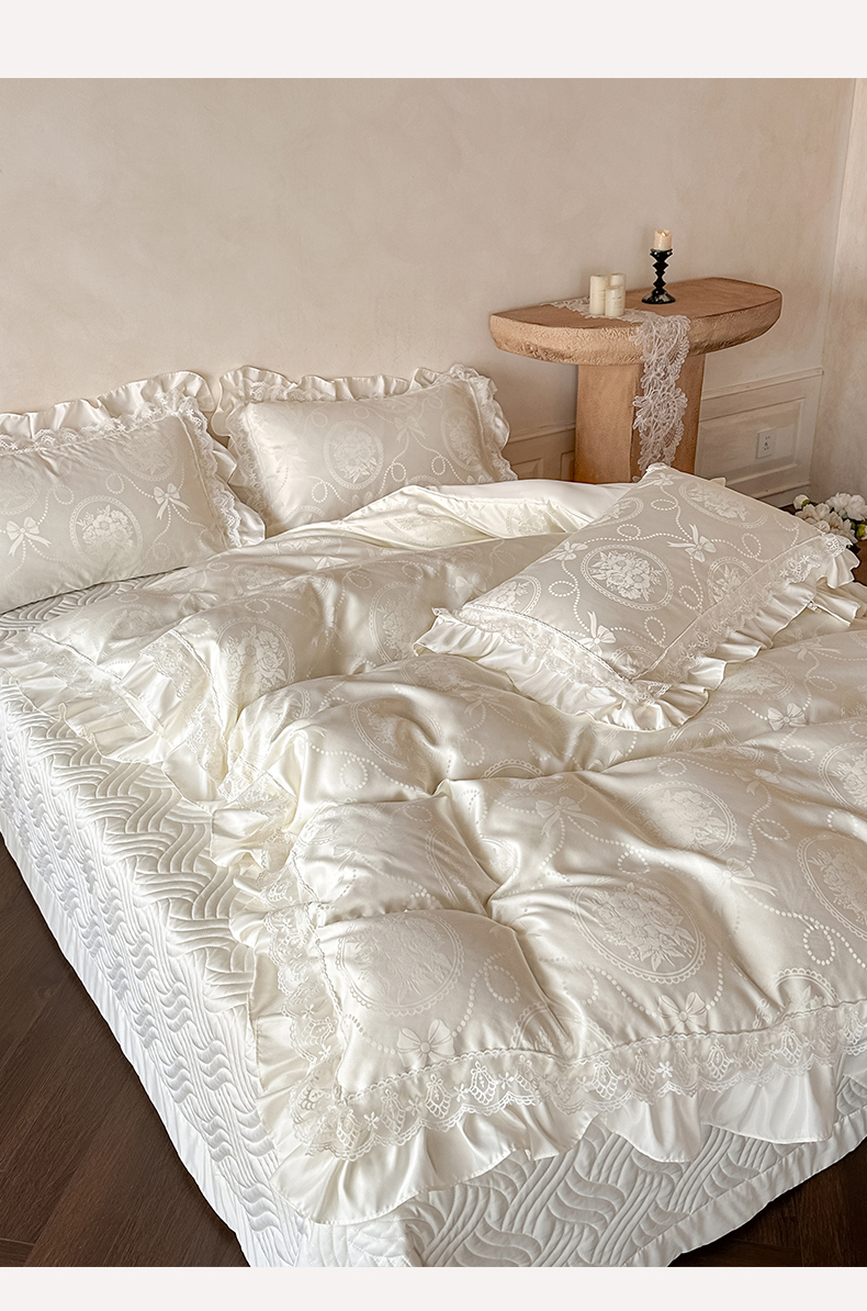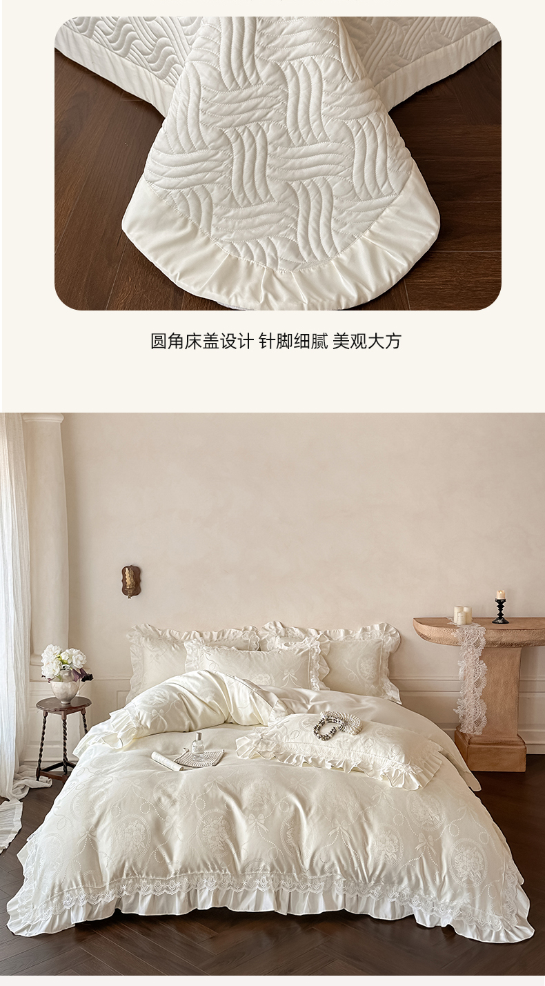 当前位置: 91家纺网 > 商品网购 > 床品套件 > 四件套 > 其它四件套 > 首尔家纺 2026新款花边夹棉床盖四件套厚织提花款系列-提供买家秀 秘境-米白