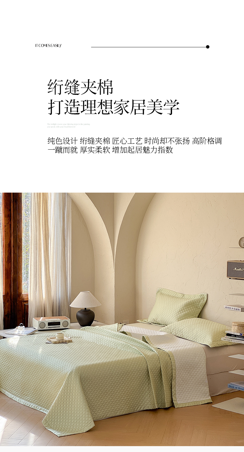 (总)法芙娜家纺 2026新款100S长绒棉床盖三件套,绿,米黄,浅粉,浅灰,深粉,深灰