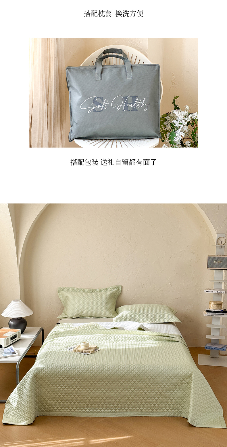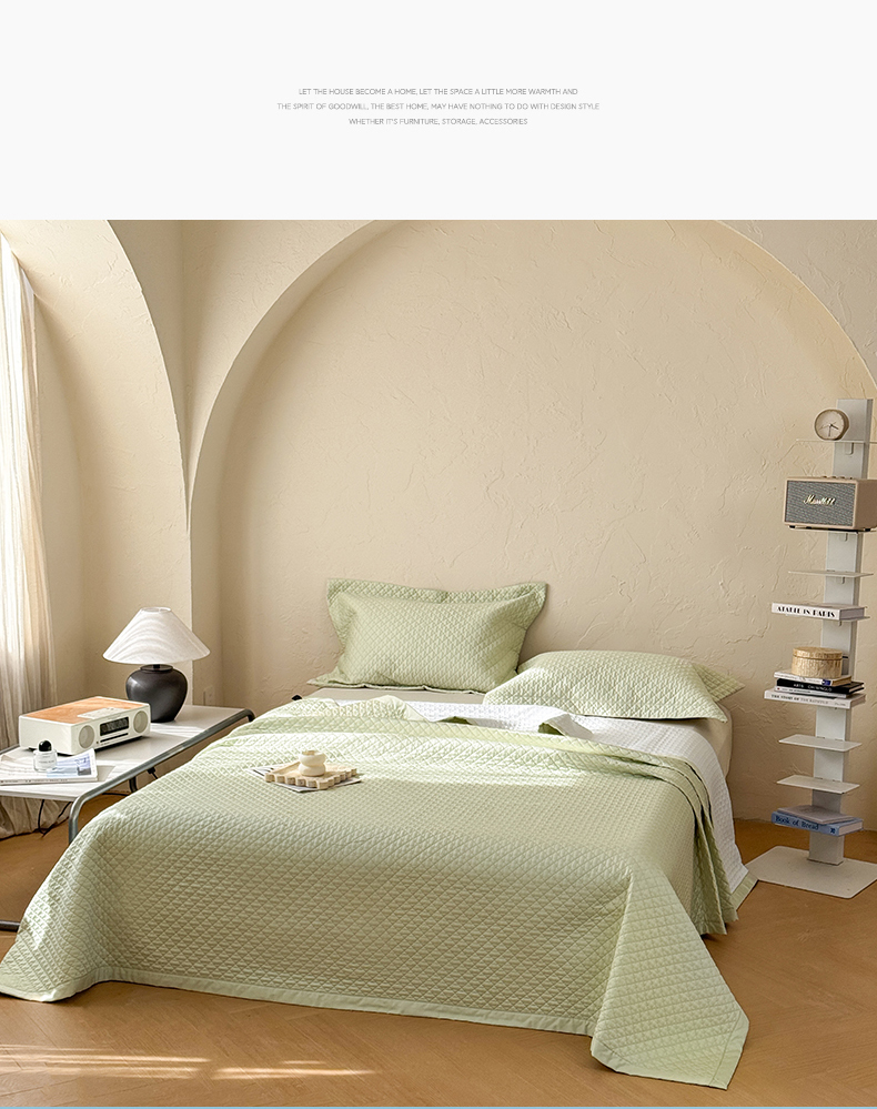 商品名称:法芙娜家纺 2026新款100S长绒棉床盖三件套 绿
