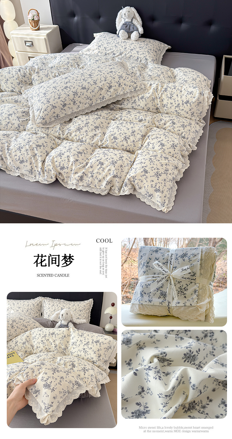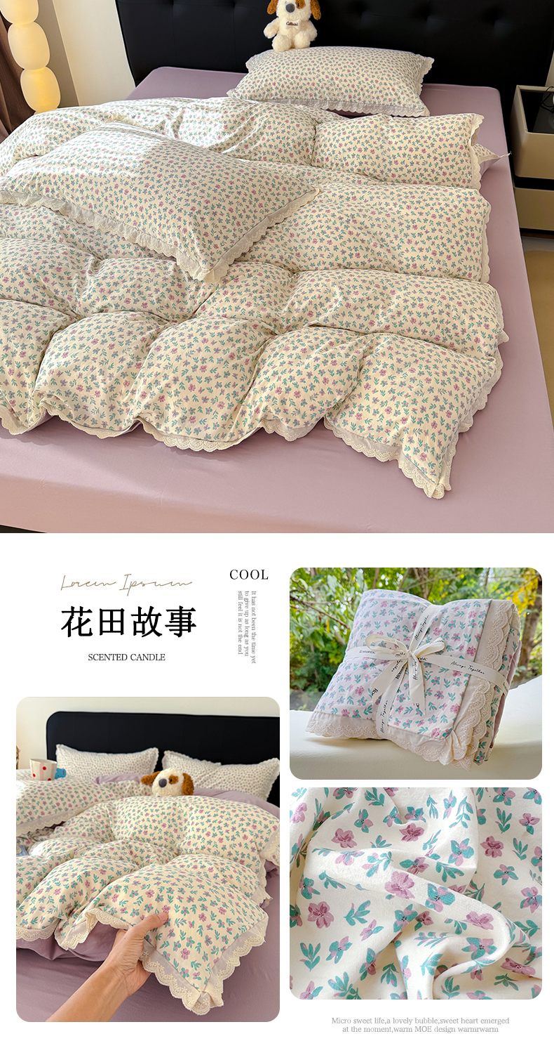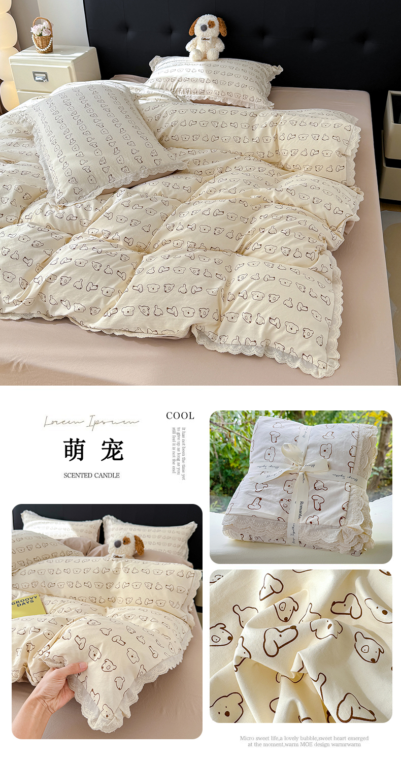 铺尚美家纺 2026新款田园韩版花边款小碎花古法水洗仿棉A类云感棉四件套 花田小狗