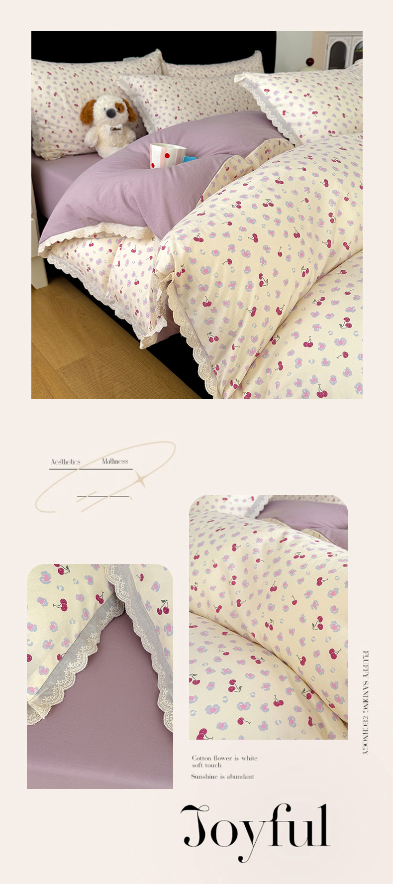 商品名称:铺尚美家纺 2026新款田园韩版花边款小碎花古法水洗仿棉A类云感棉四件套 组合图