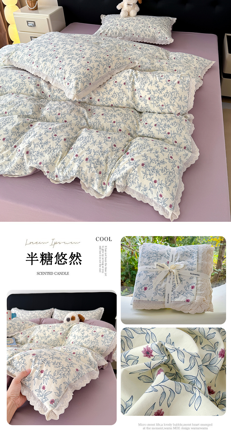 铺尚美家纺 2026新款田园韩版花边款小碎花古法水洗仿棉A类云感棉四件套 组合图