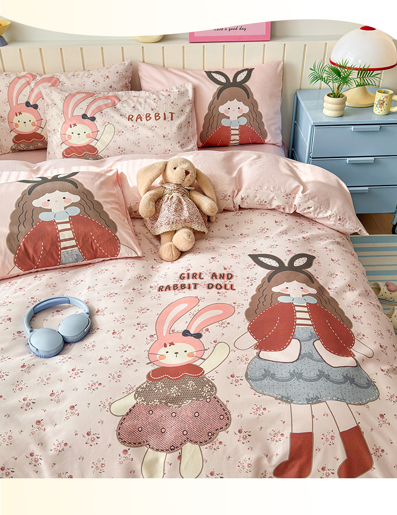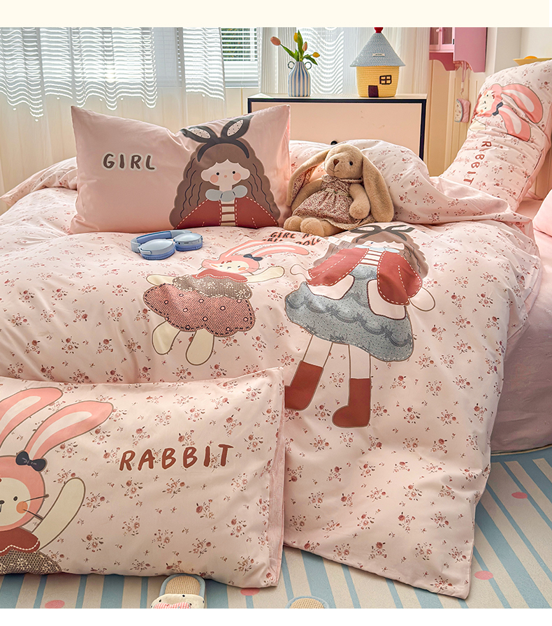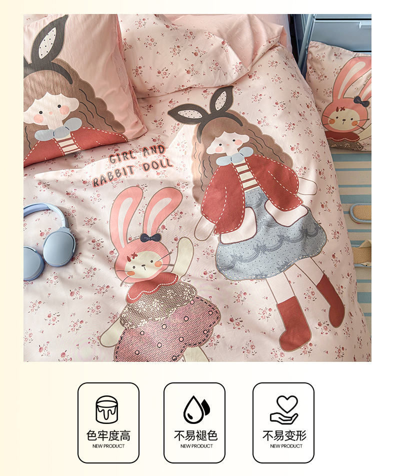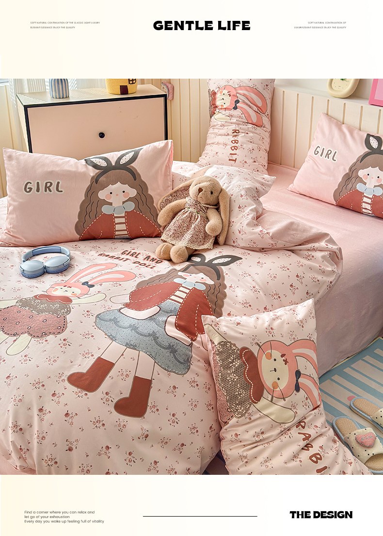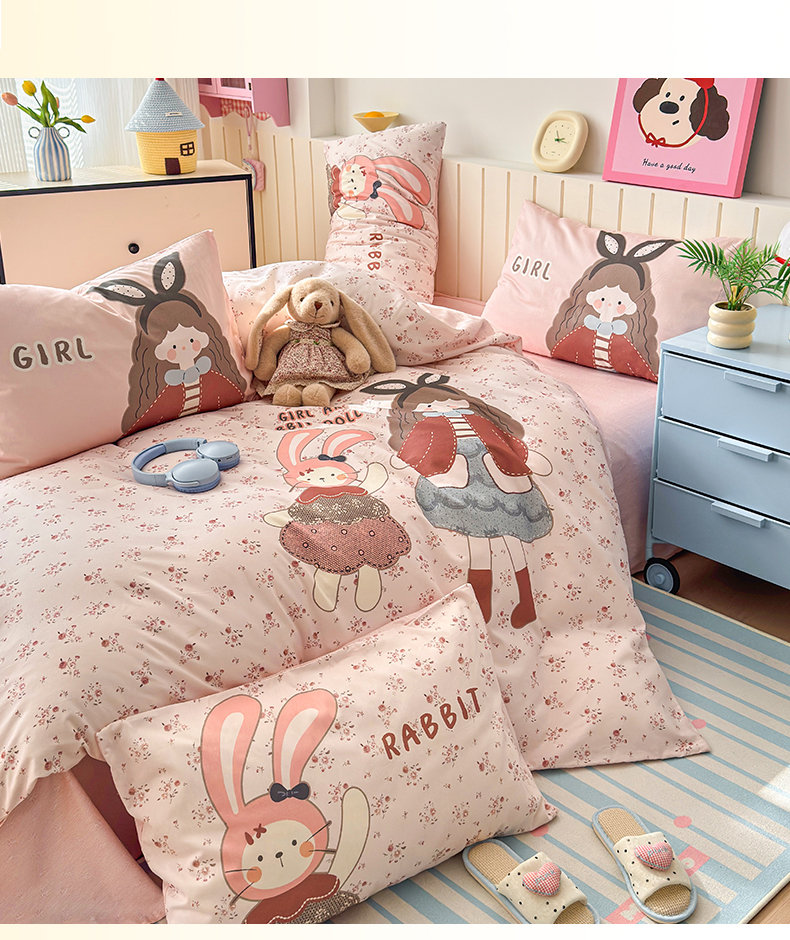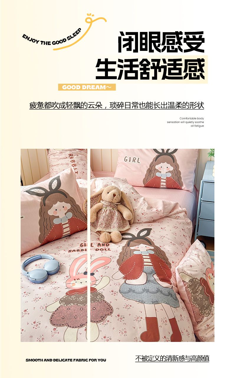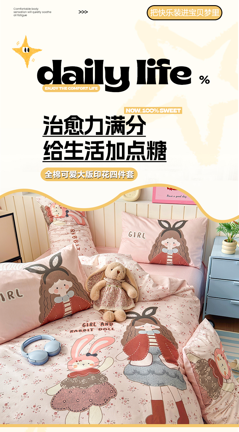 寐居家纺 2026新款全棉大版数码印花四件套 甜心女孩