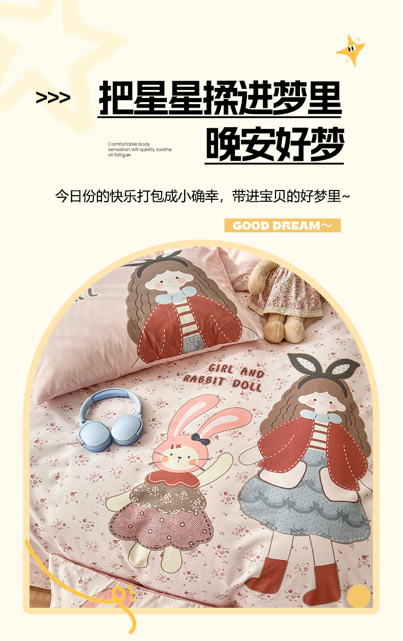 商品名称:寐居家纺 2026新款全棉大版数码印花四件套 甜心女孩
