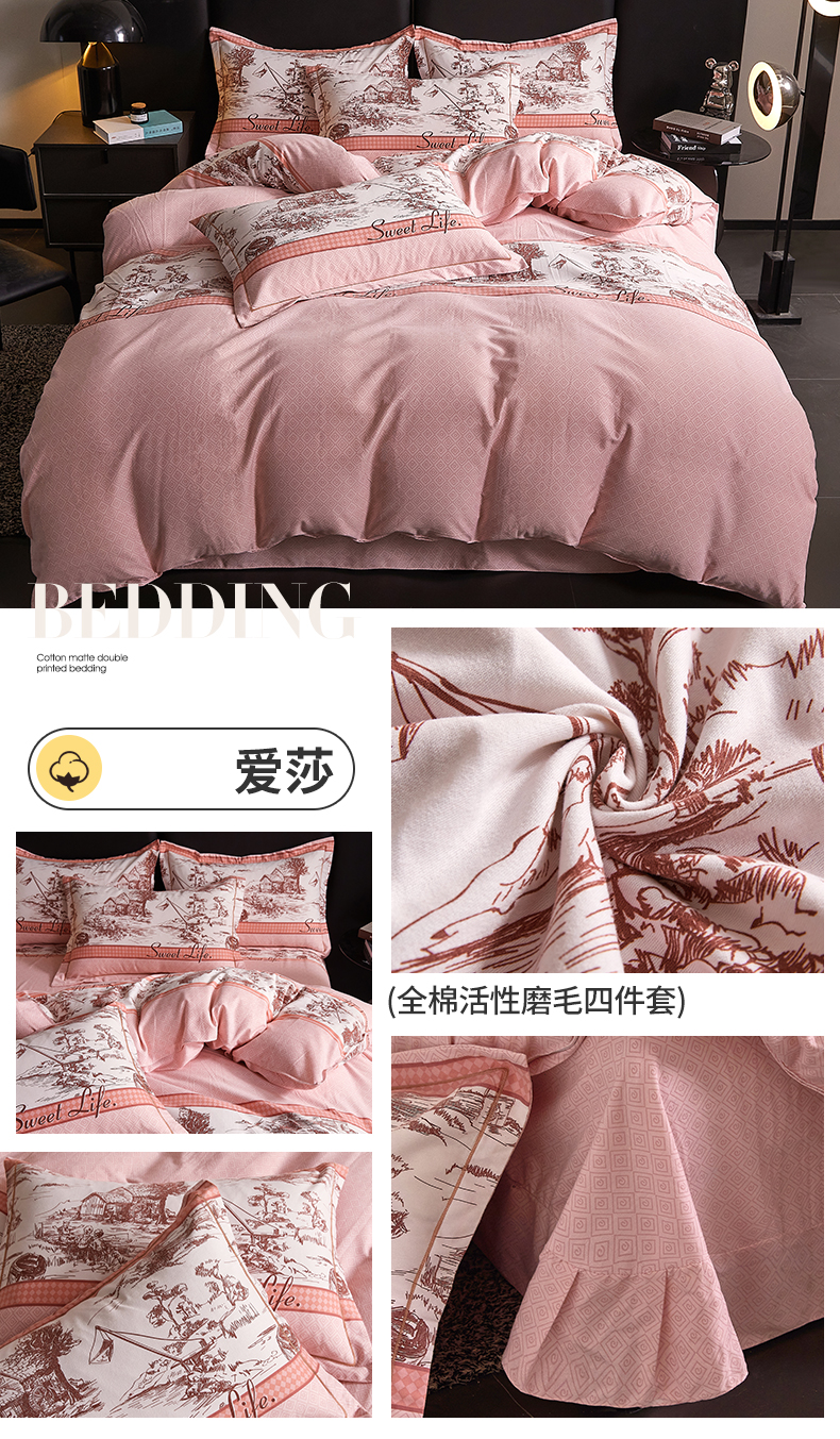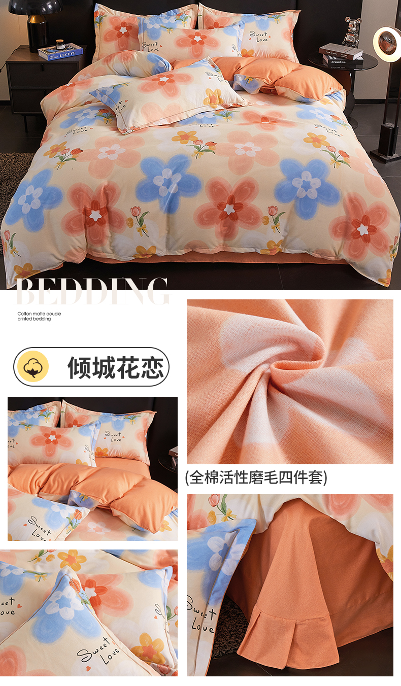 当前位置: 91家纺网 > 商品网购 > 床品套件 > 四件套 > 全棉普通四件套 > 缘舒家纺 2025新款全棉纯棉磨毛加厚四件套 倾城花恋