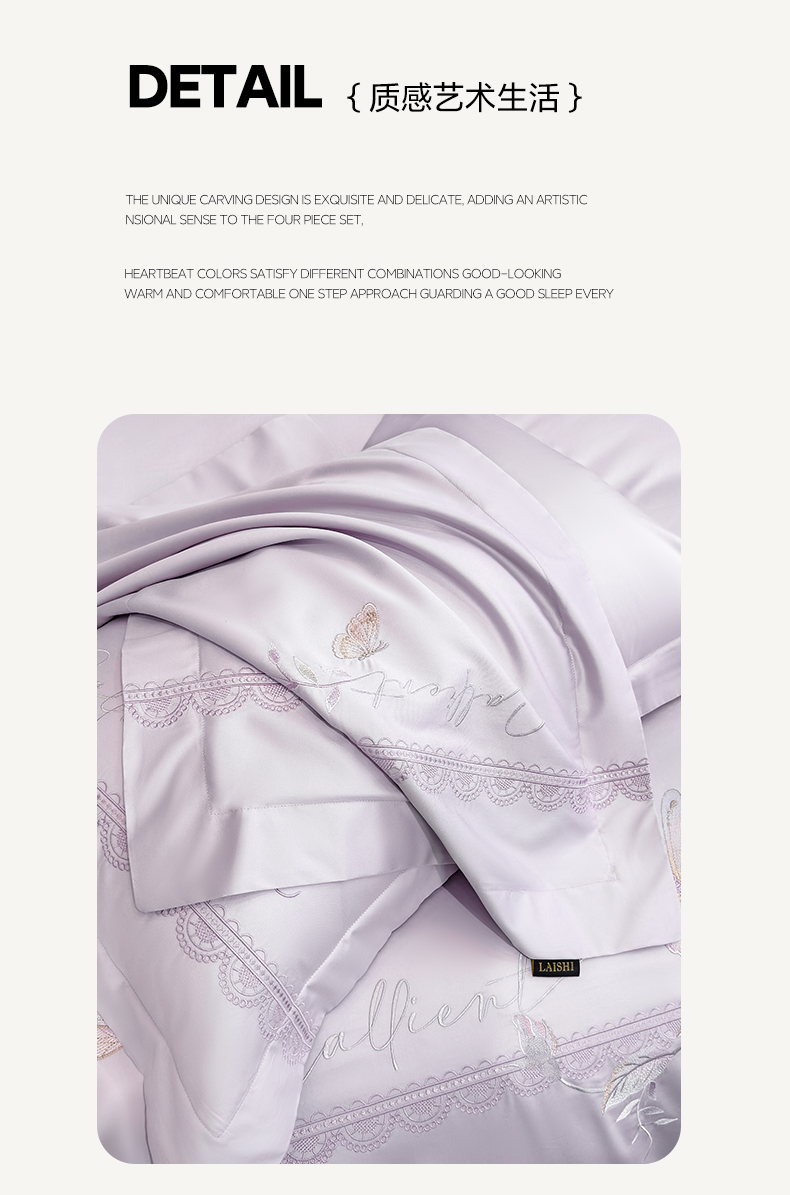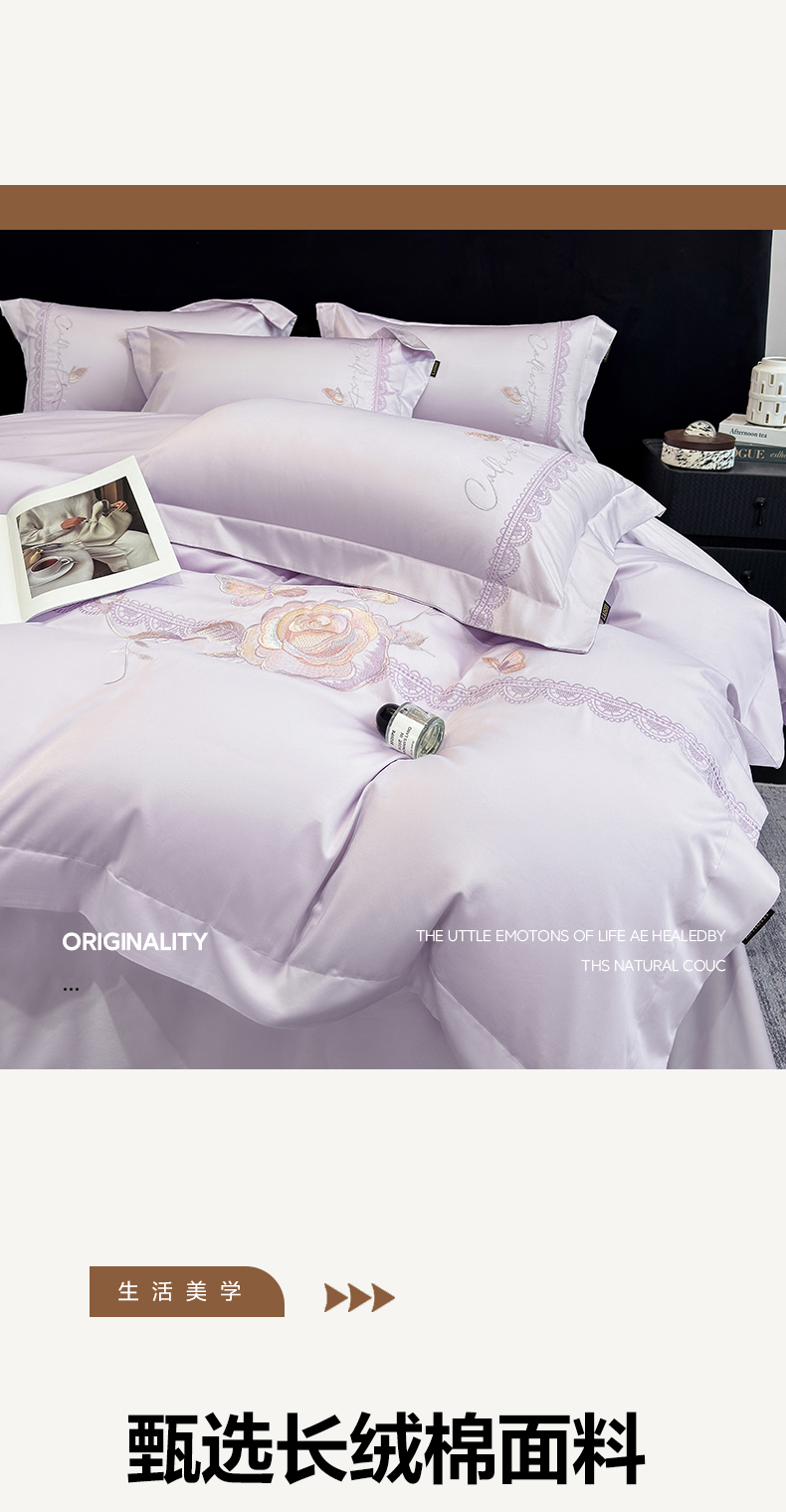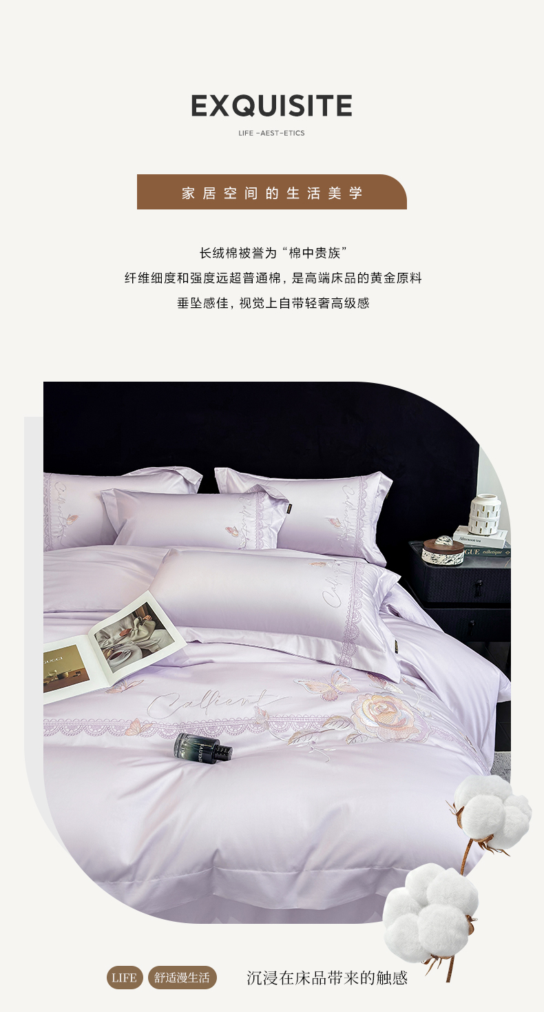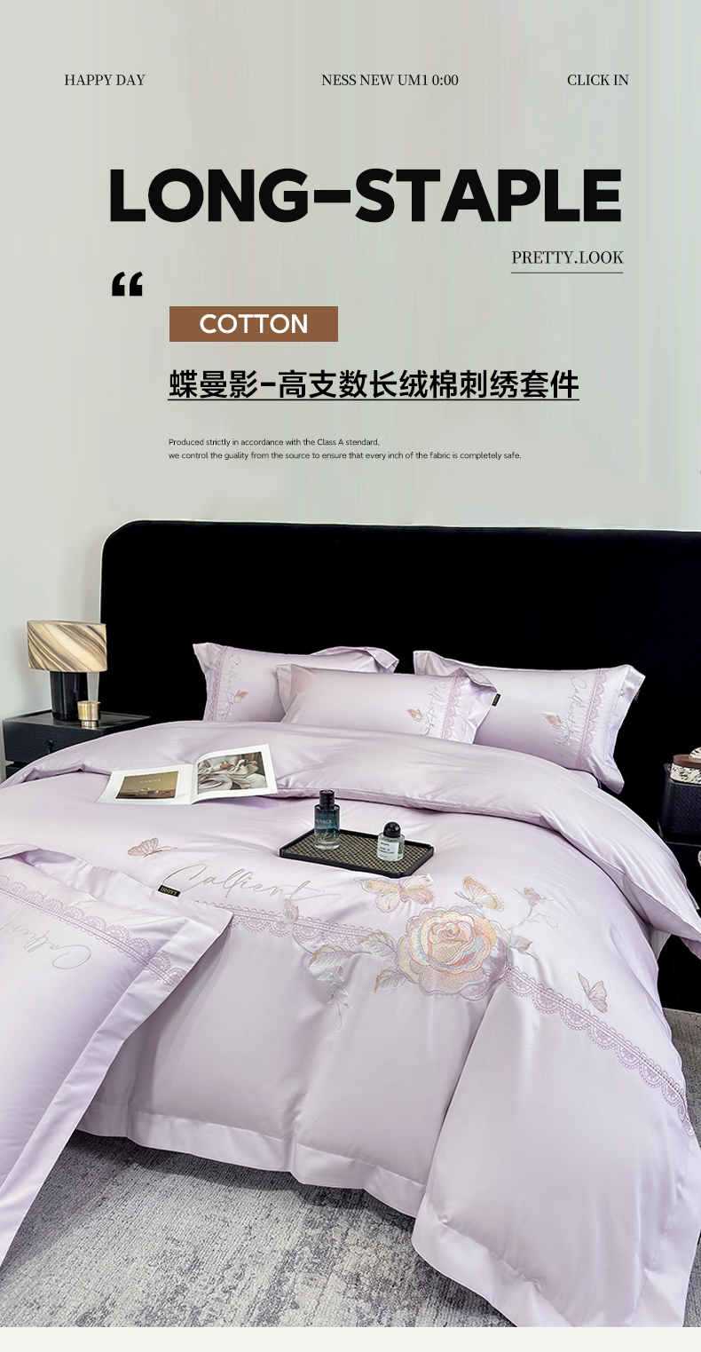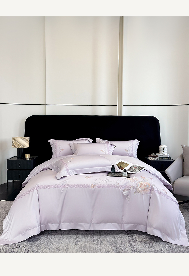 当前位置: 91家纺网 > 商品网购 > 床品套件 > 四件套 > 长绒棉四件套 > 欣宜家纺 2026新款100支贡缎长绒棉纯棉无纸刺绣软绣花四件套高端礼盒-蝶曼影 蝶曼影-梦幻紫