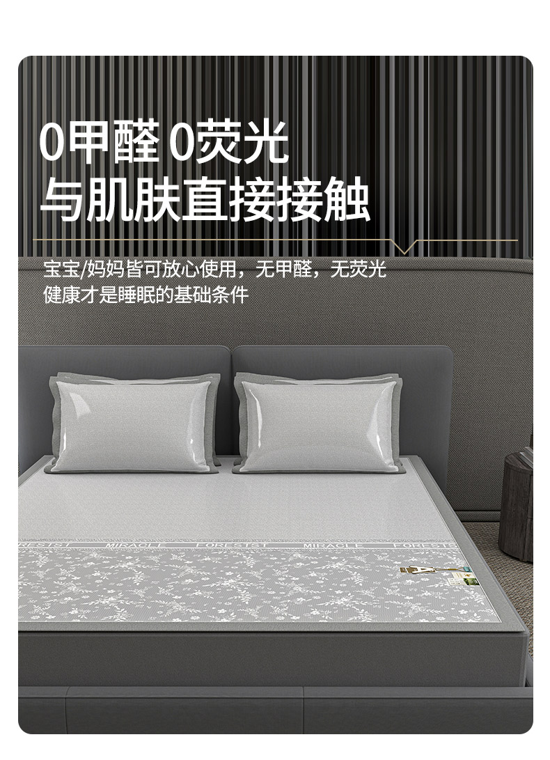 (总)小牛席业 2026新款半定位大提花凉感冰丝席(床笠款)凉席竹席藤席冰藤席乳胶席豆豆席,灰色,粉色,蓝色,香槟