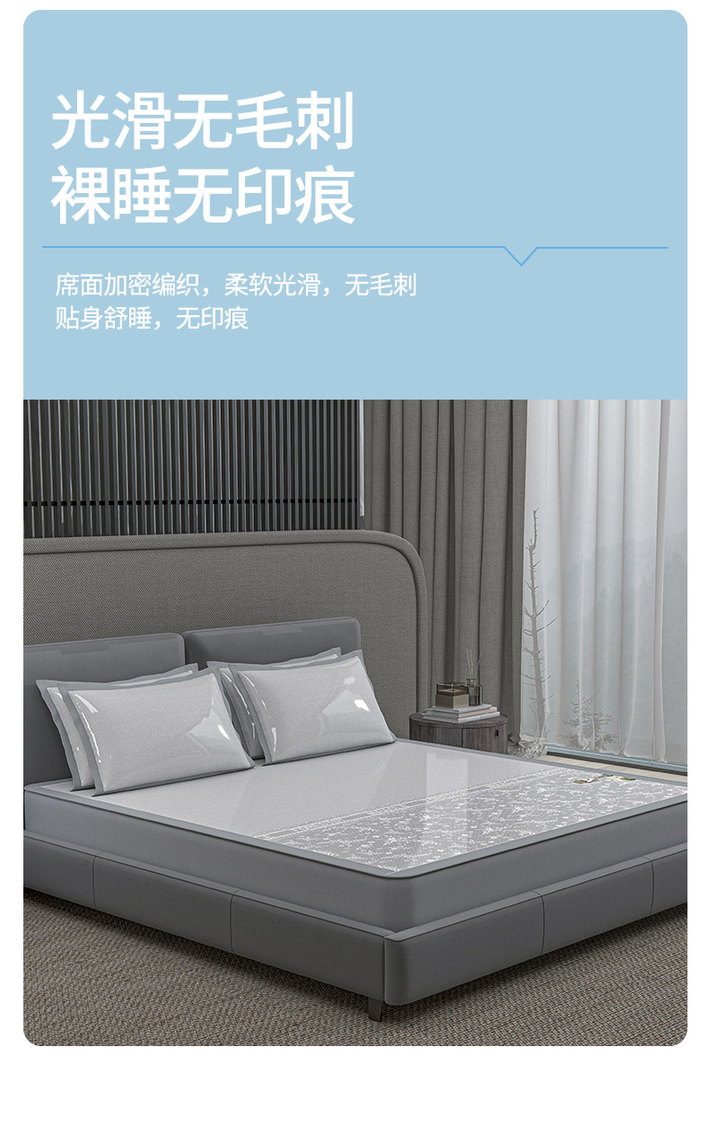 (总)2023新款超精密冰丝席-小斜纹系列-床笠款藤席凉席竹席,粉色,蓝色,绿色,银灰