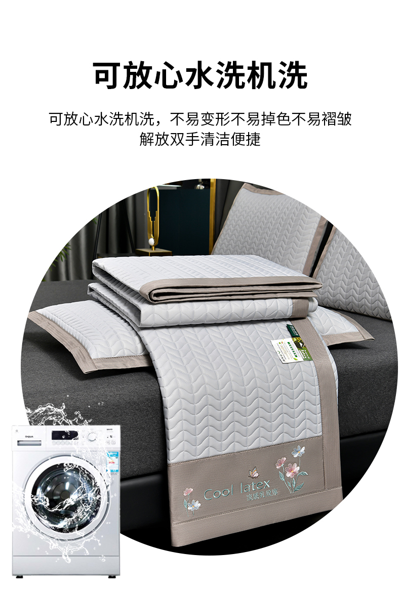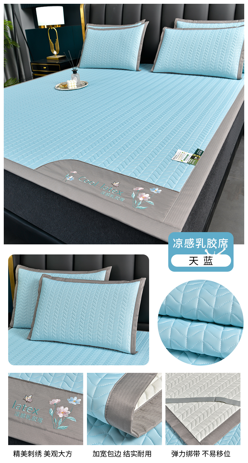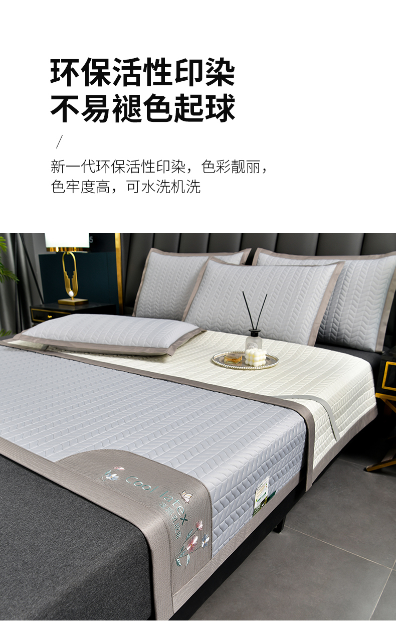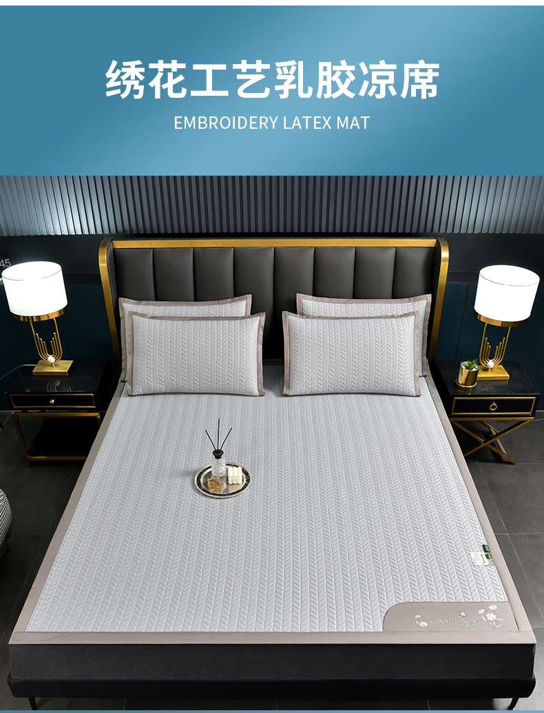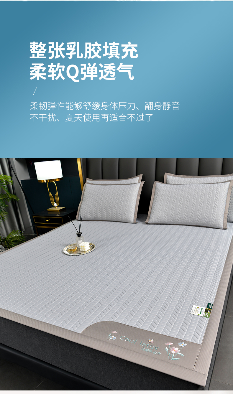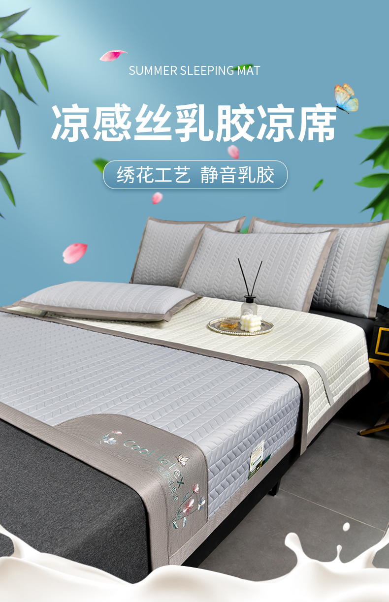 小牛席业 2026新款凉感乳胶席系列-凉席藤席冰藤席竹席空调席草席冰丝席豆豆席乳胶席三件套 凉感乳胶席(浅灰)