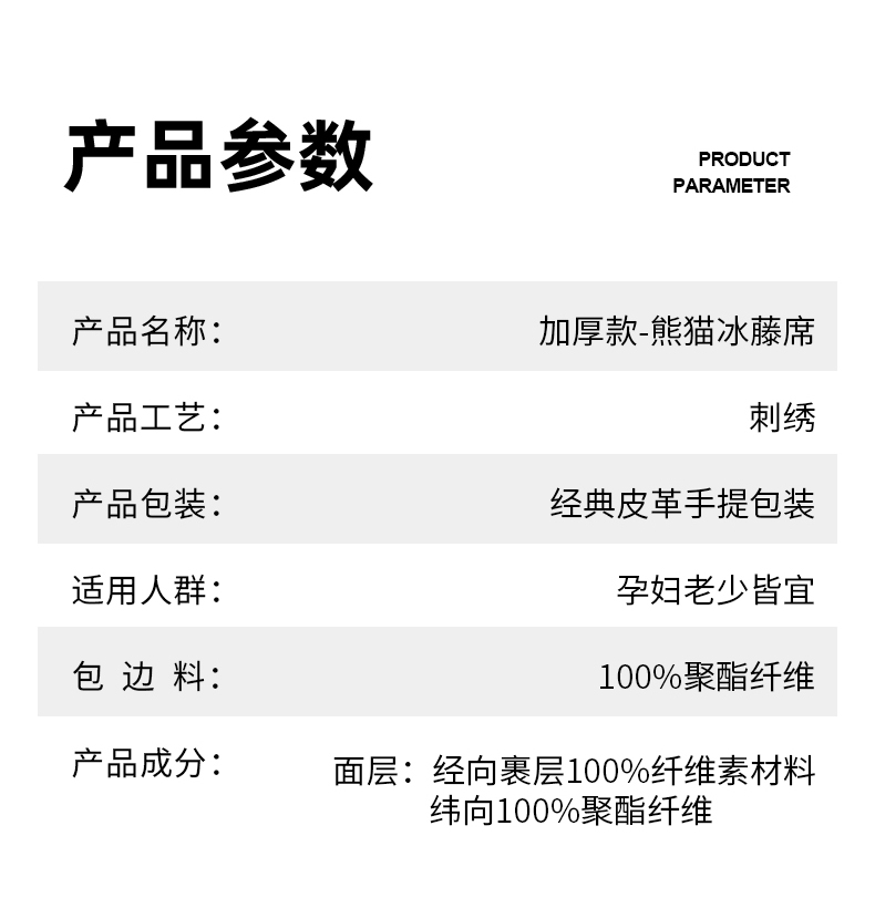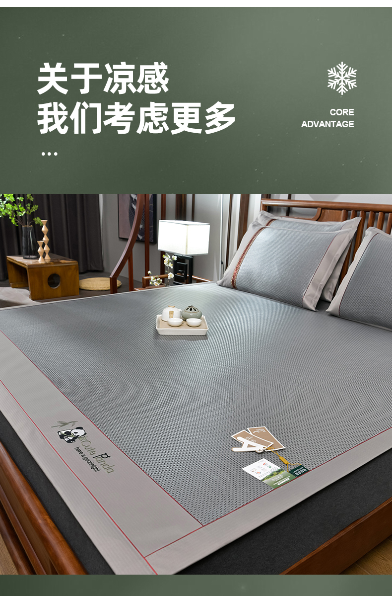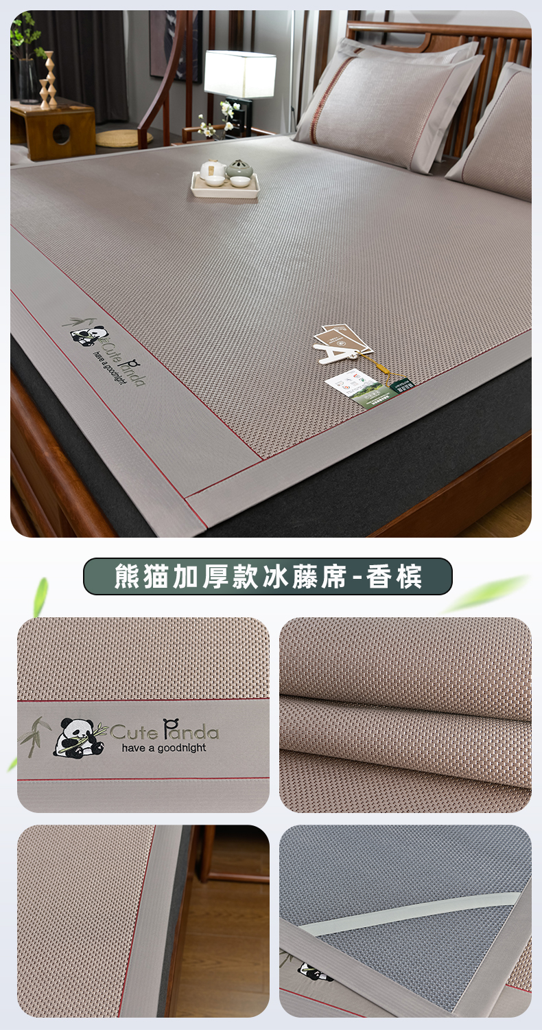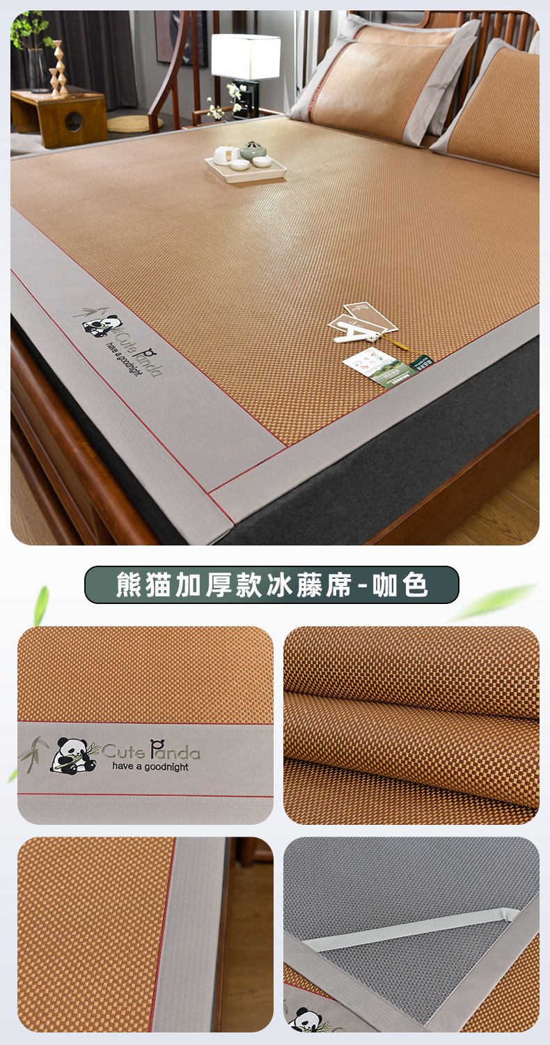 商品名称:(总)小牛席业 2026新款加厚款-经典熊猫冰藤席系列-凉席藤席冰藤席竹席空调席草席冰丝席豆豆席乳胶席三件套