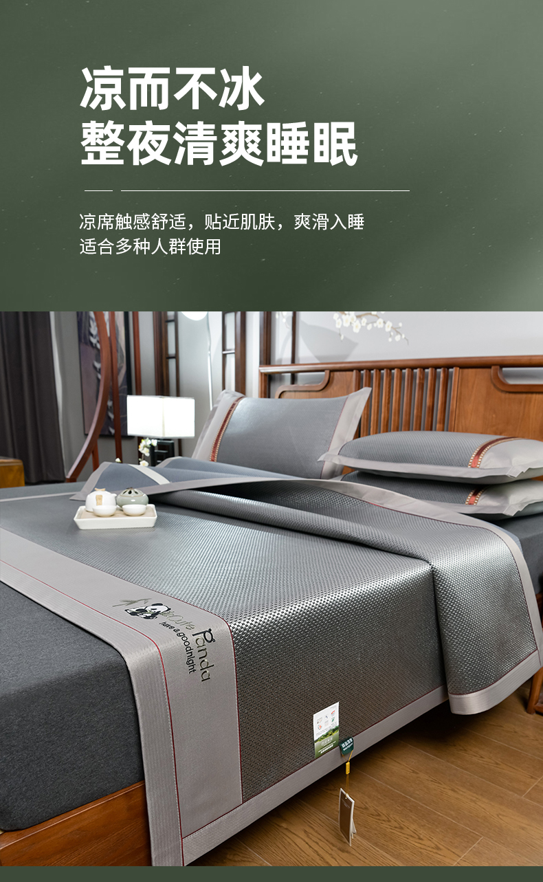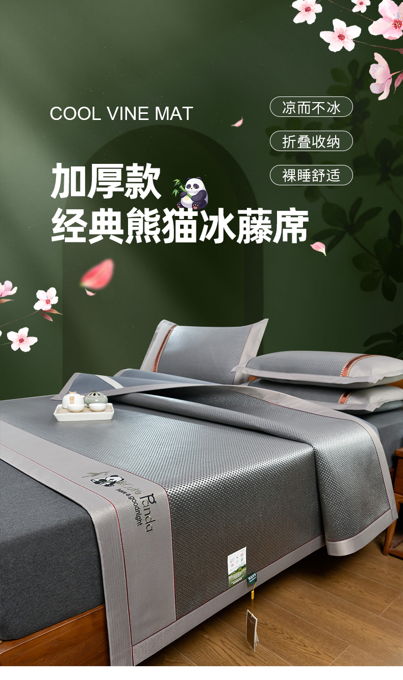 (总)小牛席业 2026新款加厚款-经典熊猫冰藤席系列-凉席藤席冰藤席竹席空调席草席冰丝席豆豆席乳胶席三件套