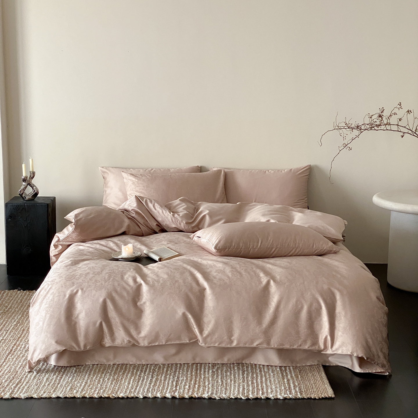 当前位置: 91家纺网 > 商品网购 > 床品套件 > 四件套 > 全棉普通四件套 > 玉宇阁家居 2026新款50支双股全棉纯棉贡缎大提花四件套 浅云微黛