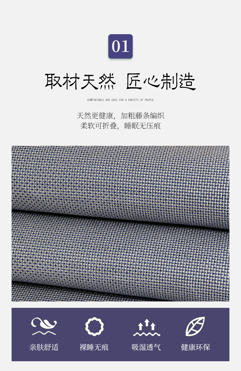 当前位置: 91家纺网 > 商品网购 > 床上用品 > 凉席 > 小牛席业 2026新款薰衣草冰藤席系列-床笠款(冰藤席面)凉席藤席冰藤双面席冰丝席竹席凉席空调席草席三件套 薰衣草清香冰藤席-床笠款(浅蓝)
