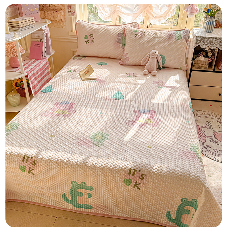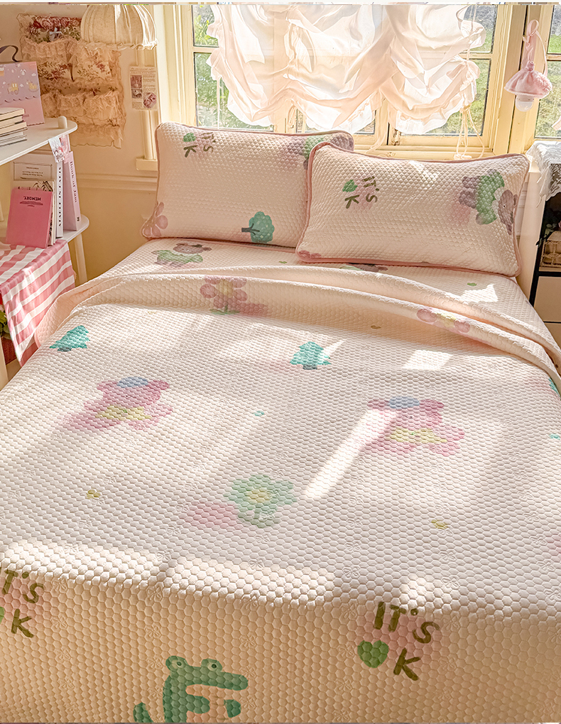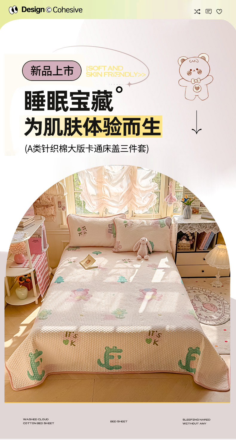 当前位置: 91家纺网 > 商品网购 > 床品套件 > 四件套 > 其它四件套 > 梵克保罗 2026新款金豆豆床盖A类针织棉印花大版卡通床盖三四件套 粉熊和小鳄
