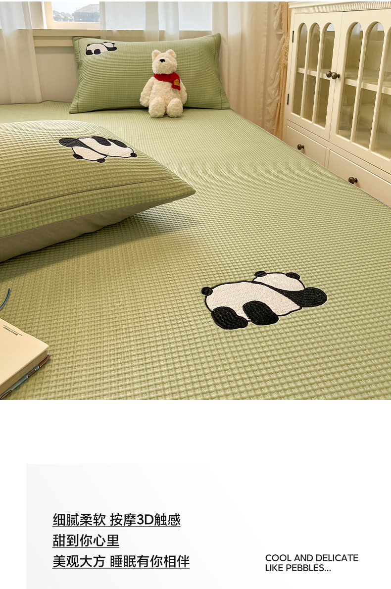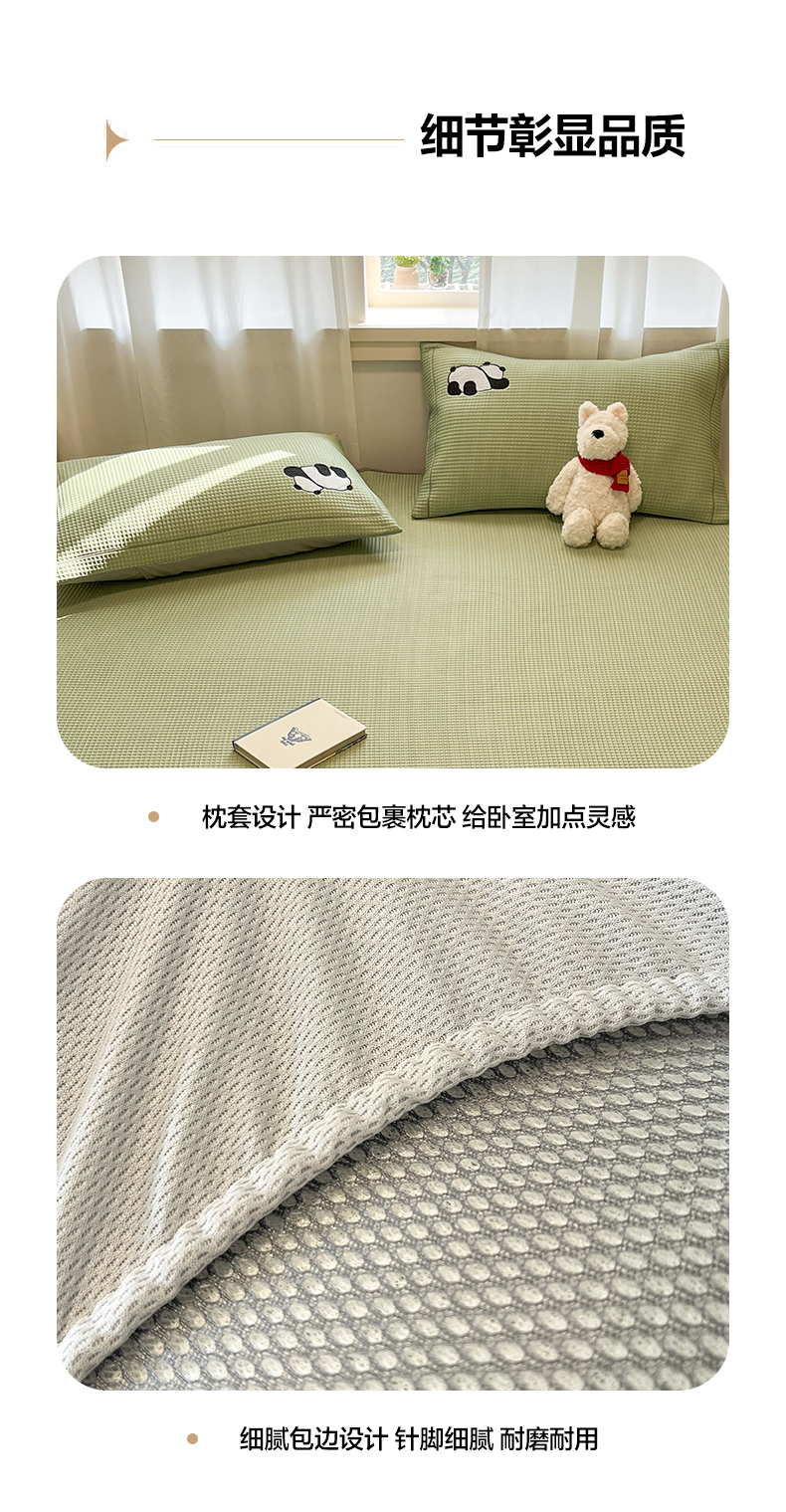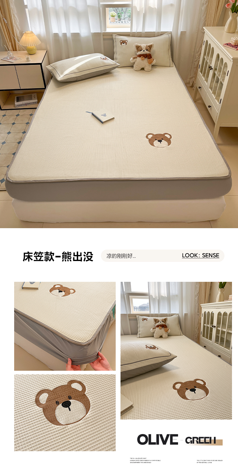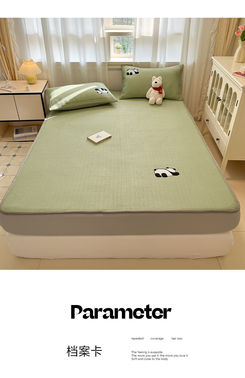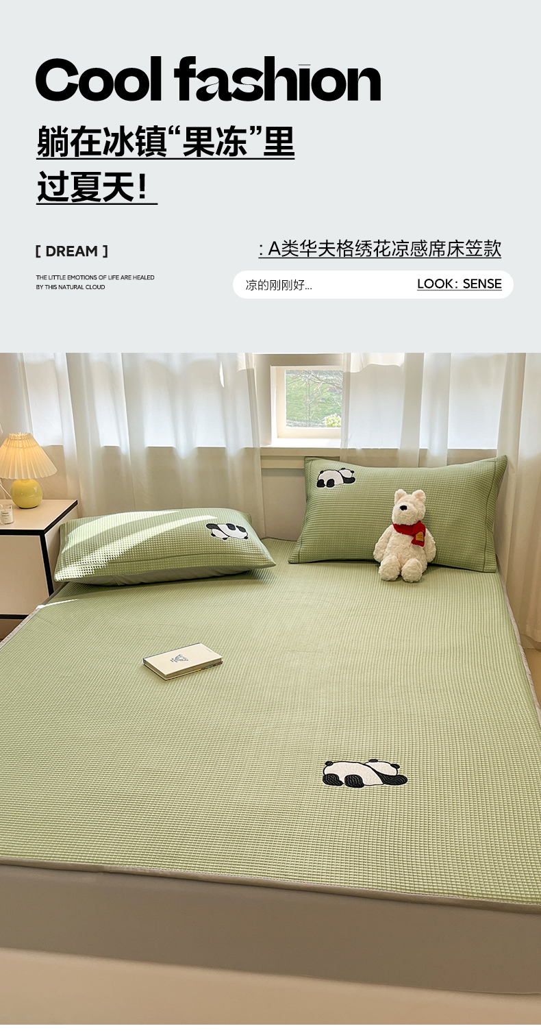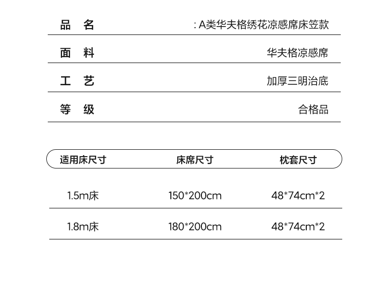 商品名称:(总)雅居纺家纺 2026新款A类加厚三明治底华夫格绣花凉感席床笠款凉席席子