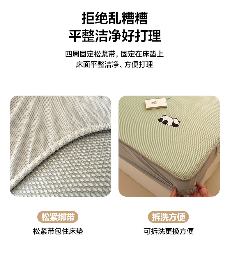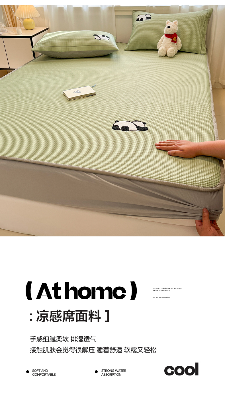 (总)雅居纺家纺 2026新款A类加厚三明治底提花小清新凉感席床笠款凉席席子,粉小兔,蝴蝶结猫咪,领结小猫,平安熊猫,山茶花,太空星球,晚安小狗,小熊熊,星星小熊,悠闲花园