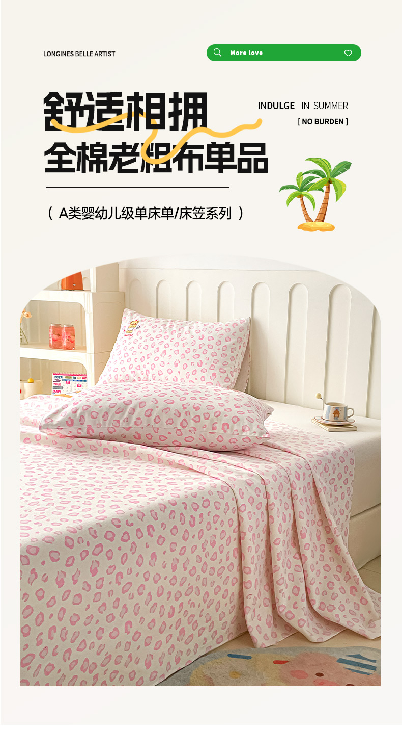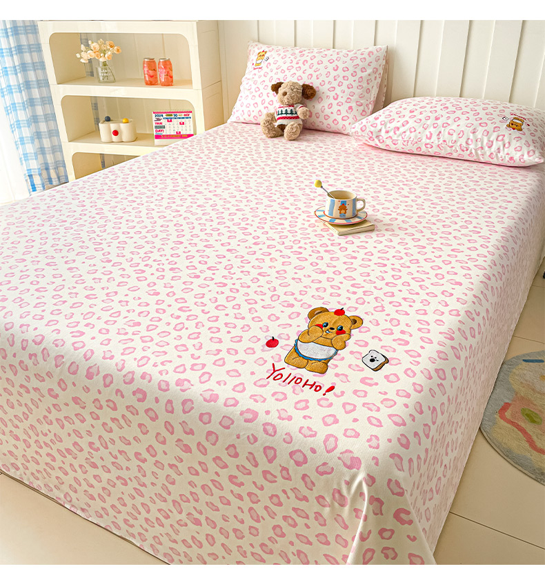 雅居纺家纺 2026新款全棉绣花A类老粗布床单单件床单单品凉席席子 老粗布-可爱熊