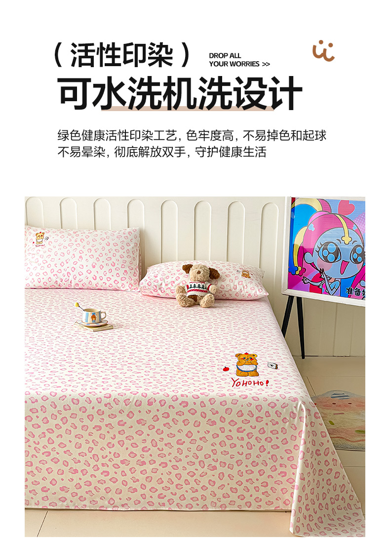 (总)雅居纺家纺 2022新款13070全棉印花四件套,波纹,多彩,简笔画,莓关系,奶油绿豹纹,倾心,数字
